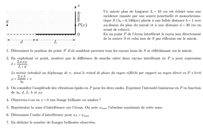 Champ d’interférence - exemple du miroir de Lloyd
