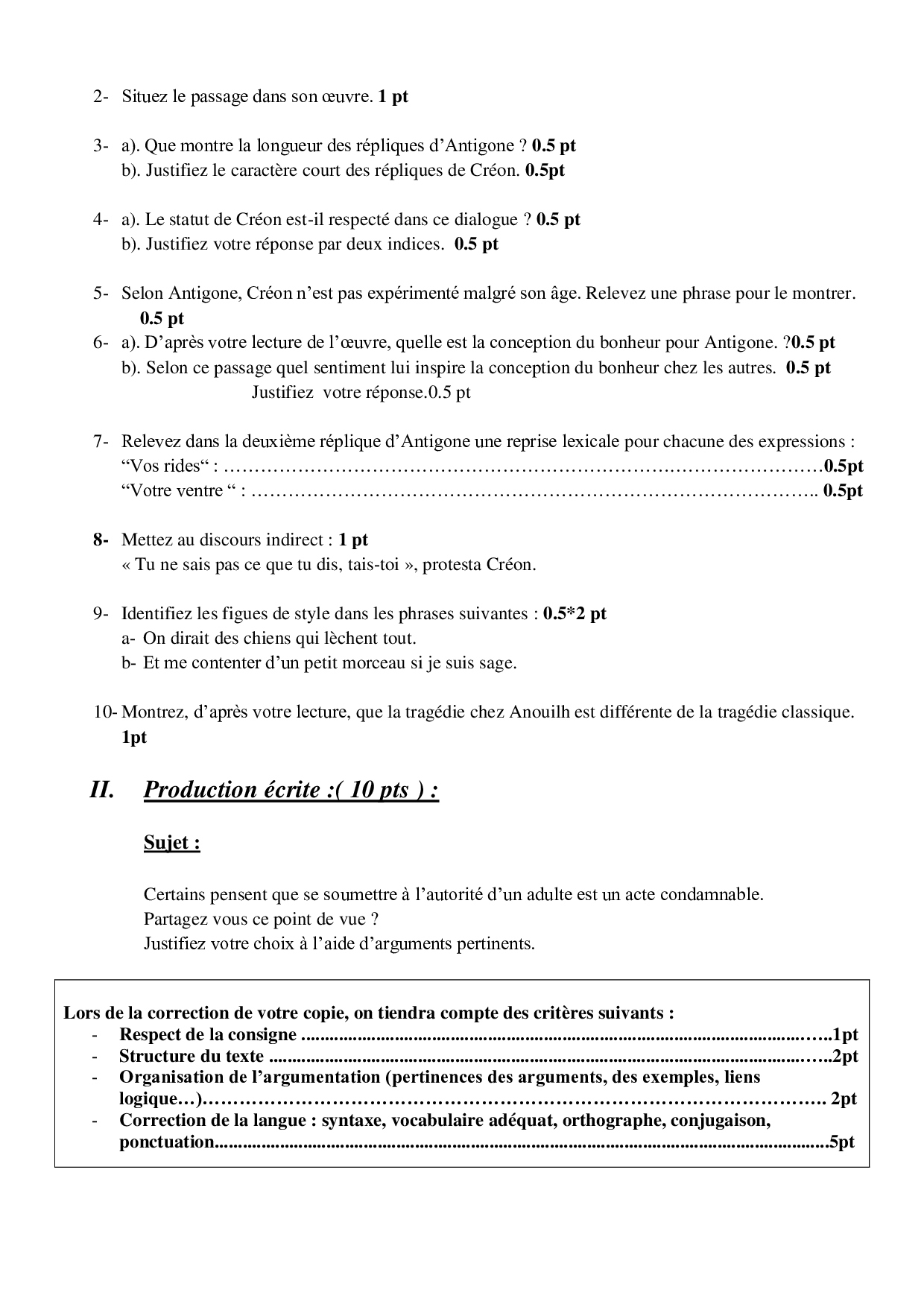 Devoir 1 Modèle 2 - Français 1er Bac Semestre 2
