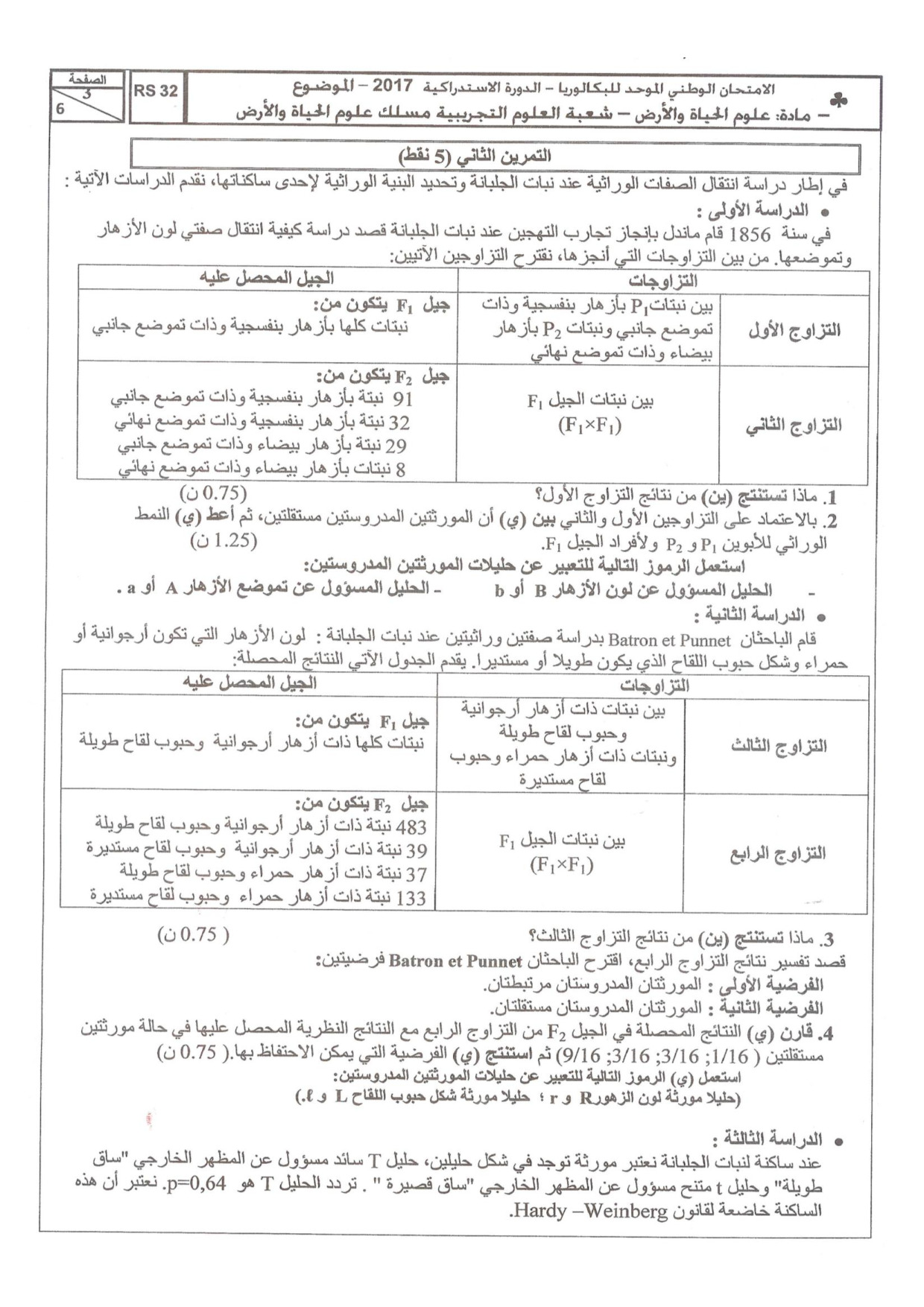 علوم الحياة والأرض (علوم الحياة والأرض) 2017 الدورة الإستدراكية - الموضوع