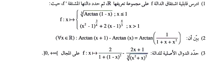الاشتقاق ودراسة الدوال - تمارين محلولة