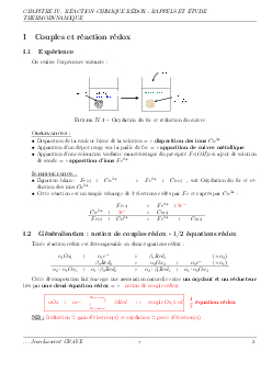 Réaction chimique rédox - Rappels et étude thermodynamique générale - Cours