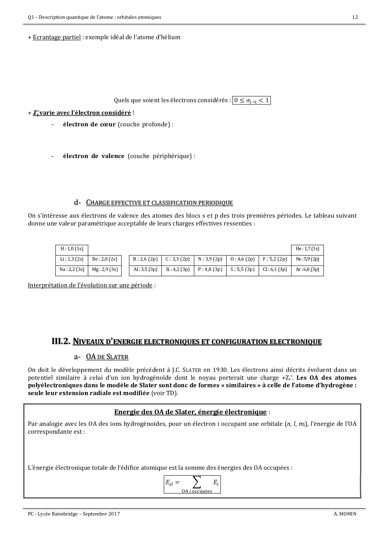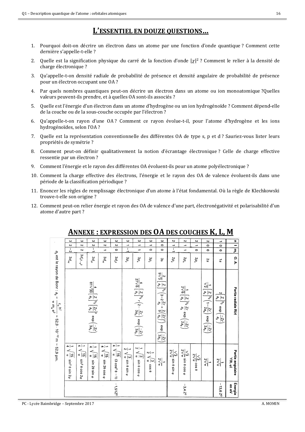 Description quantique de l'atome - orbitales atomiques : Cours