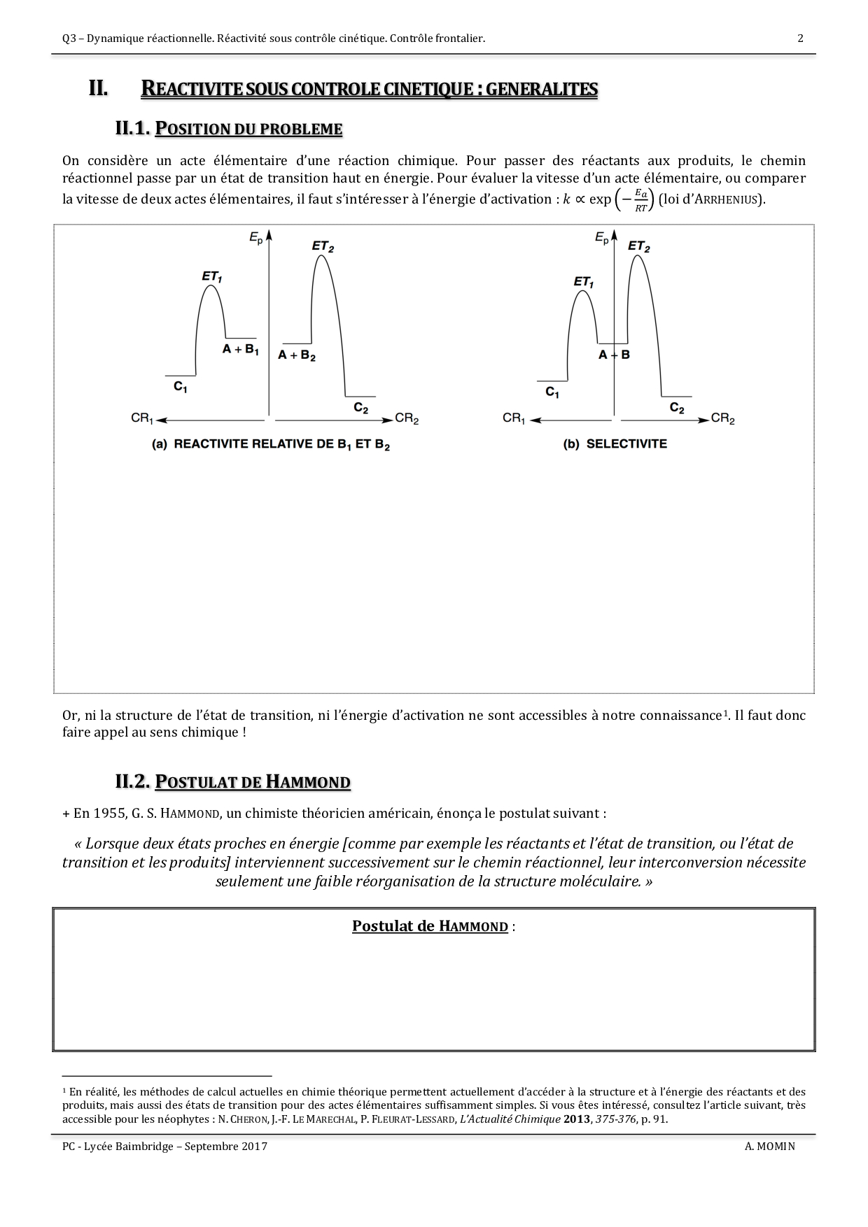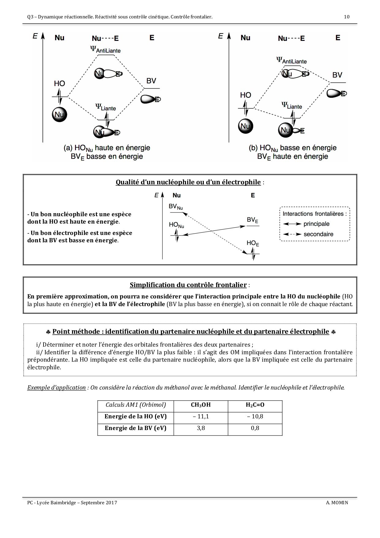 Dynamique réactionnelle - Réactivité sous contrôle cinétique - Contrôle frontalier : Cours