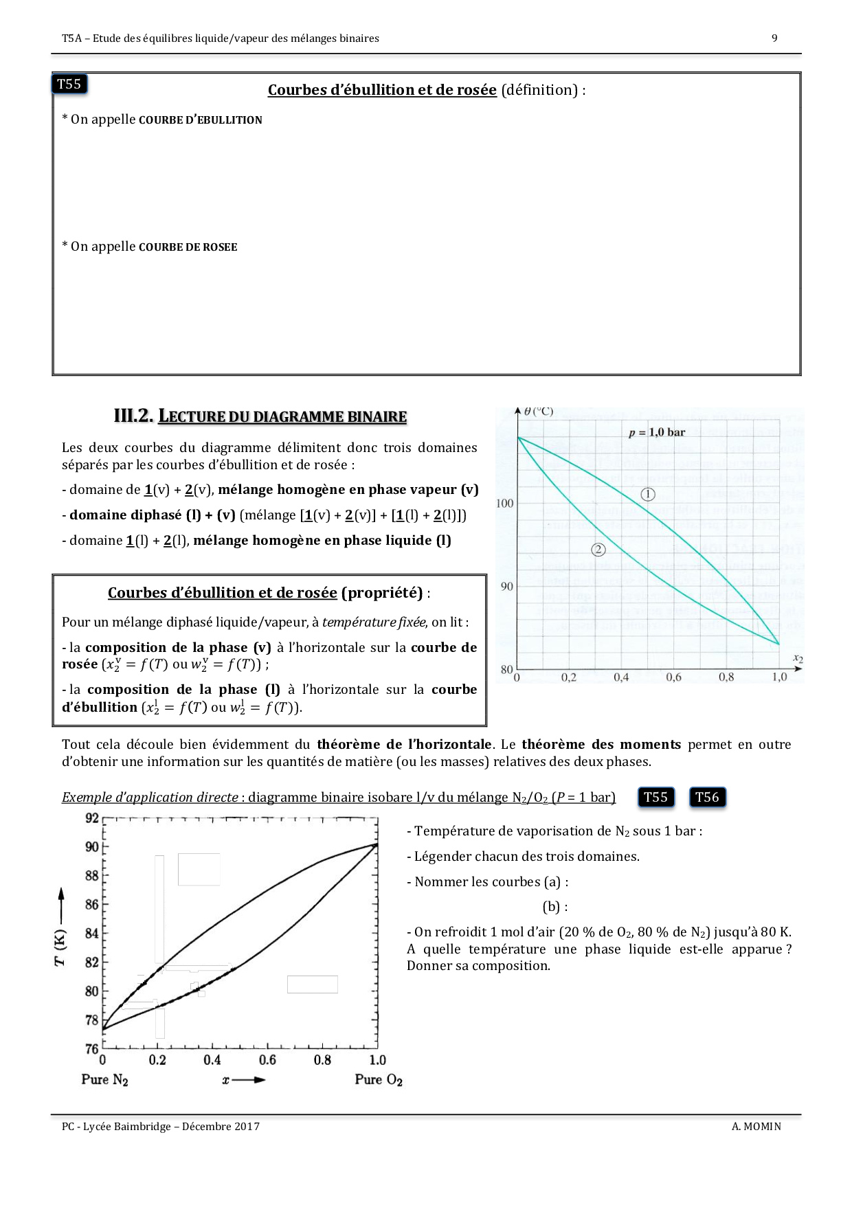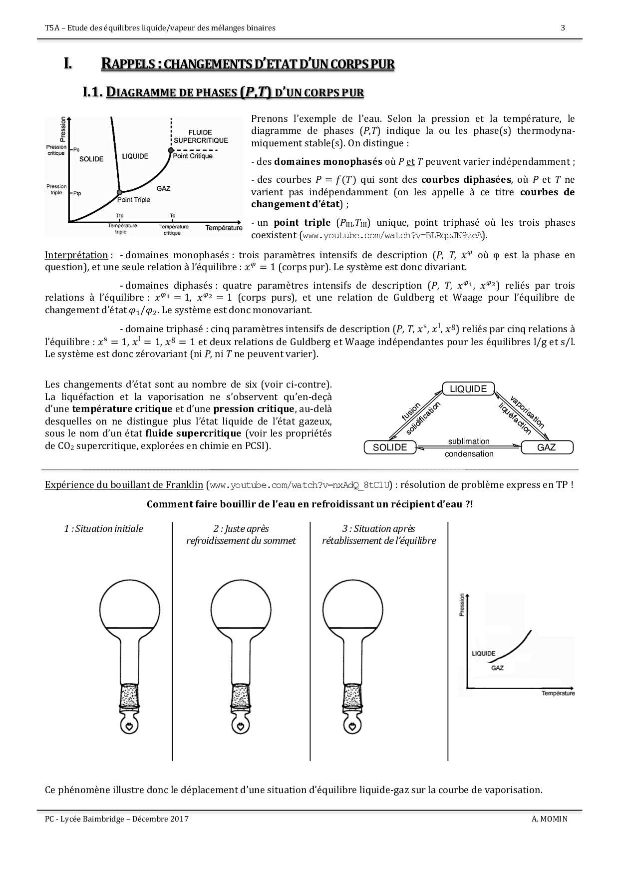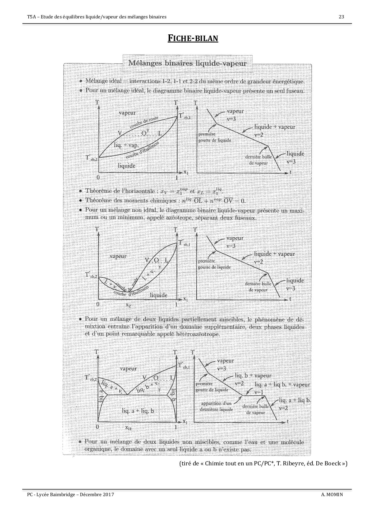 Cours - Equilibres de phases liquide-vapeur des mélanges binaires