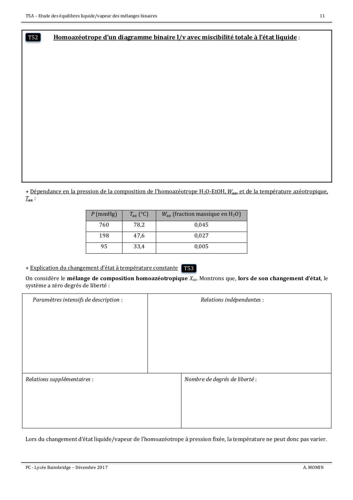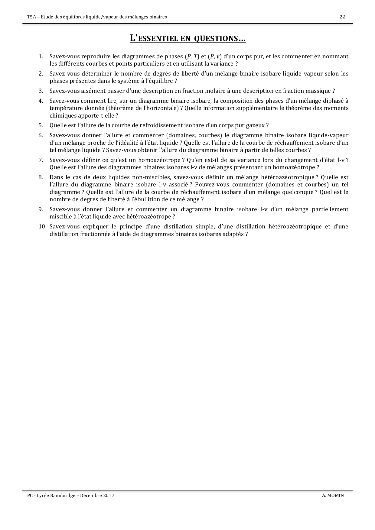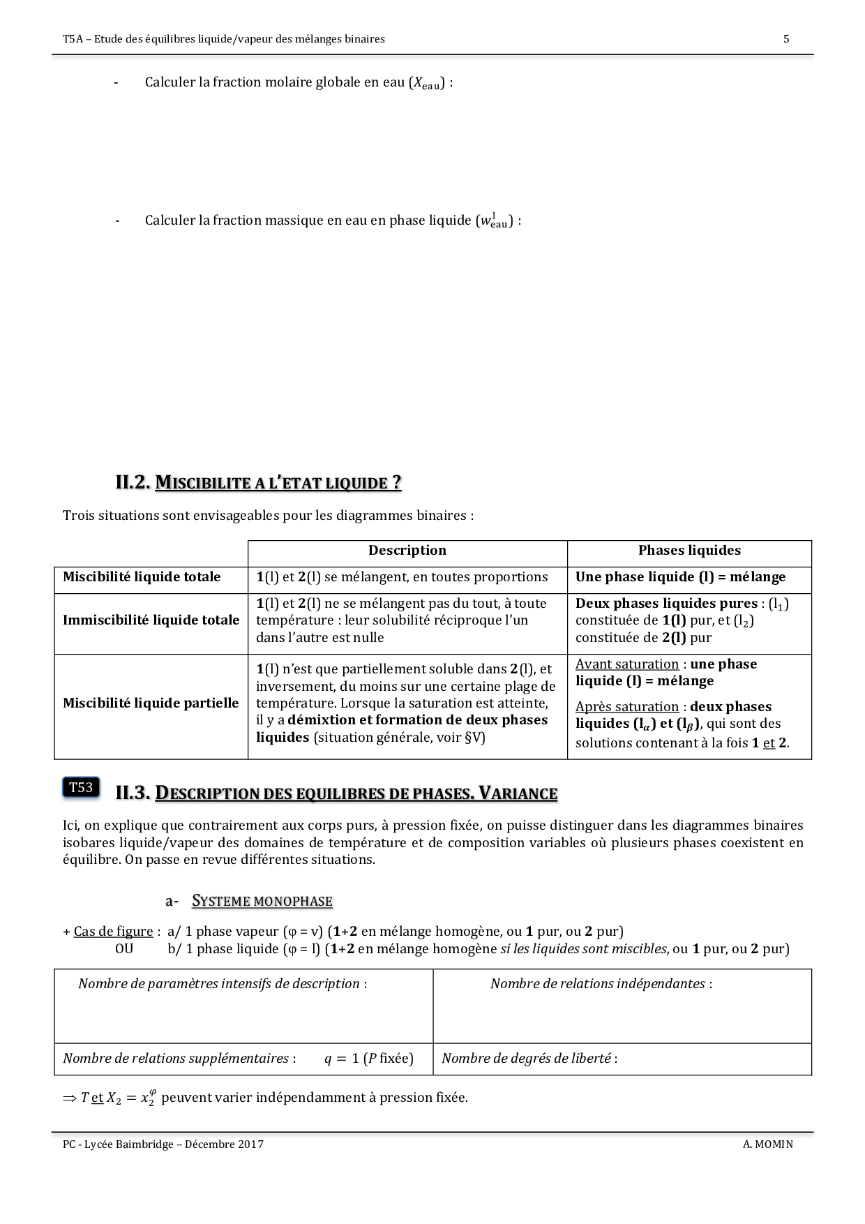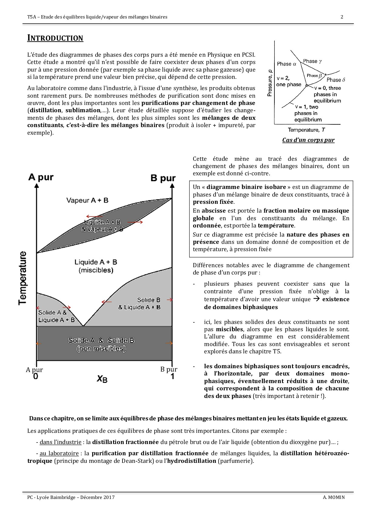 Cours - Equilibres de phases liquide-vapeur des mélanges binaires