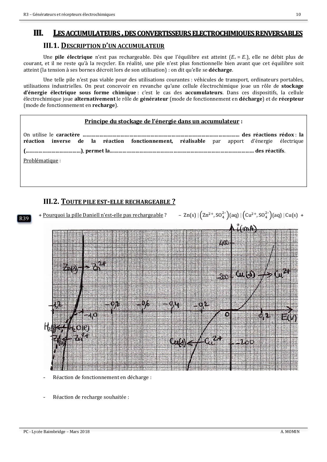 Cours - Applications des courbes intensité-potentiel - générateurs et récepteurs électrochimiques