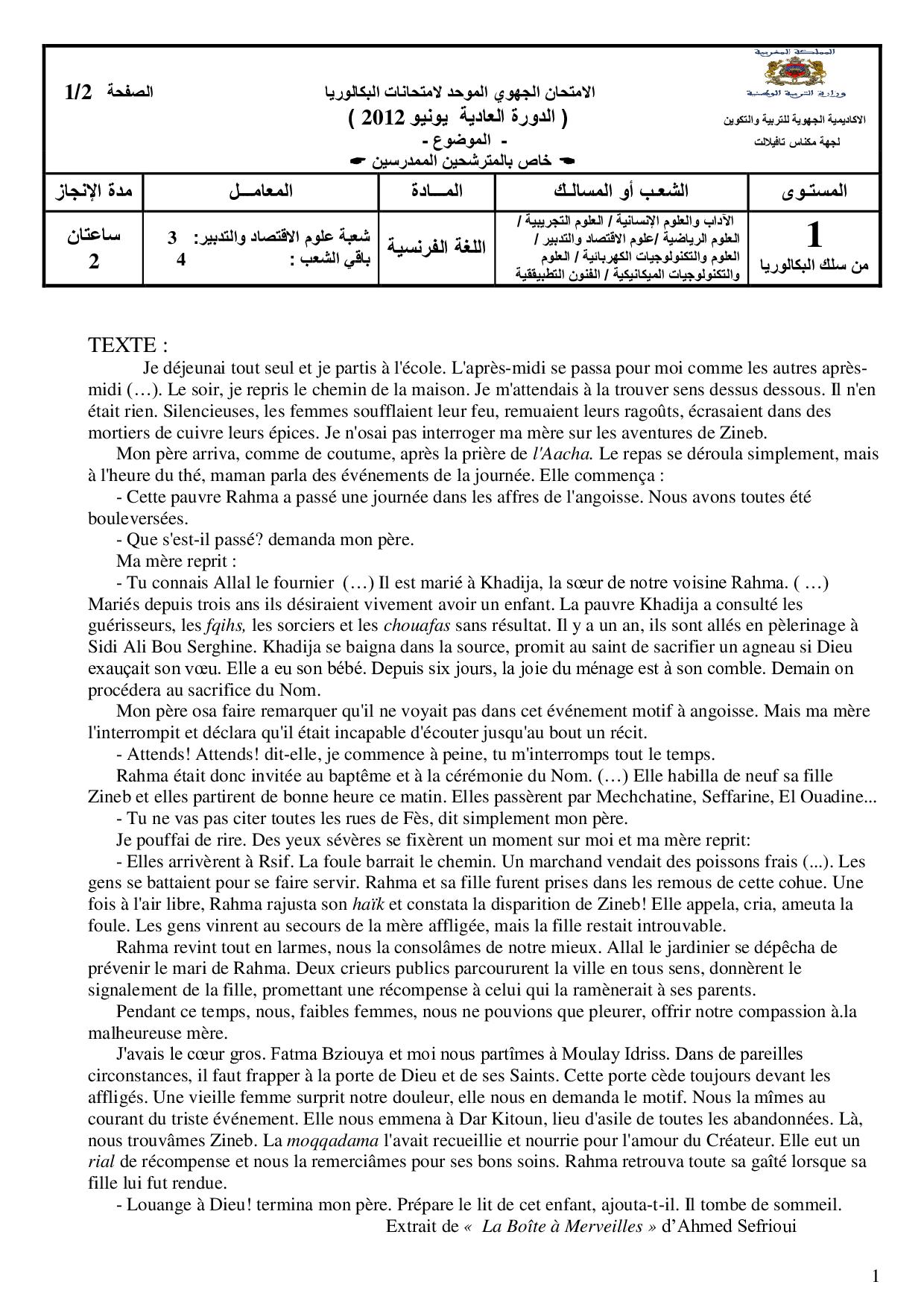 Français: 1er BAC Sciences et Technologies Mécaniques