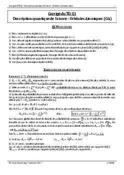 Description quantique de l'atome - orbitales atomiques : Corrigés