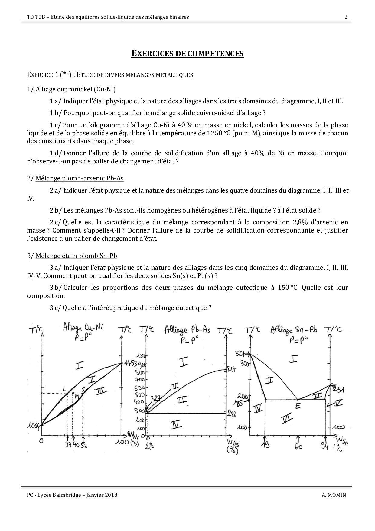 Exercices - Equilibres de phases liquide-solide des mélanges binaires