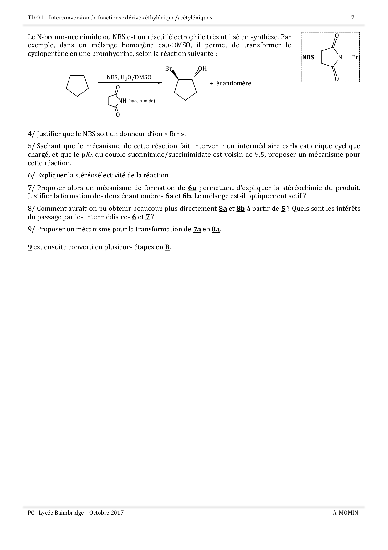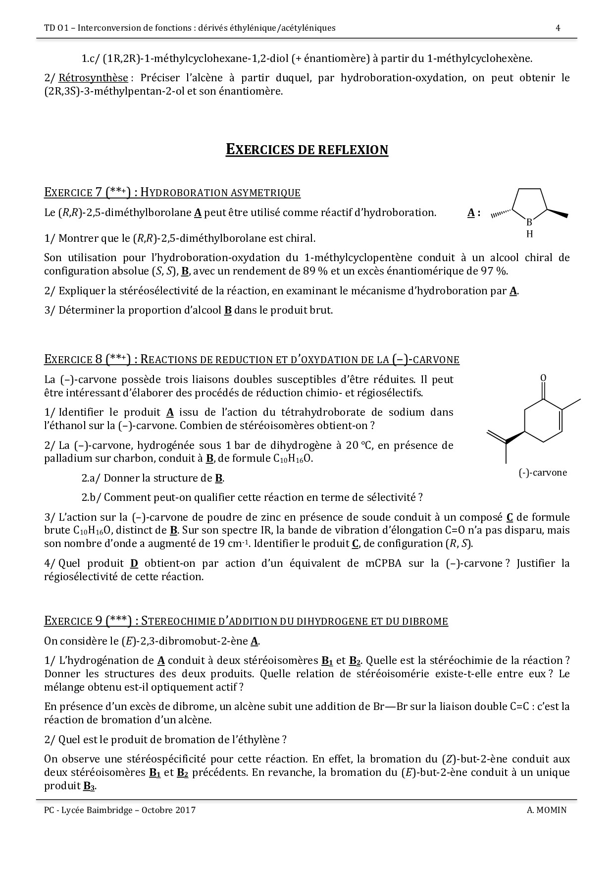 Exercices - Interconversion de fonctions mettant en jeu des composés éthyléniques ou acétyléniques