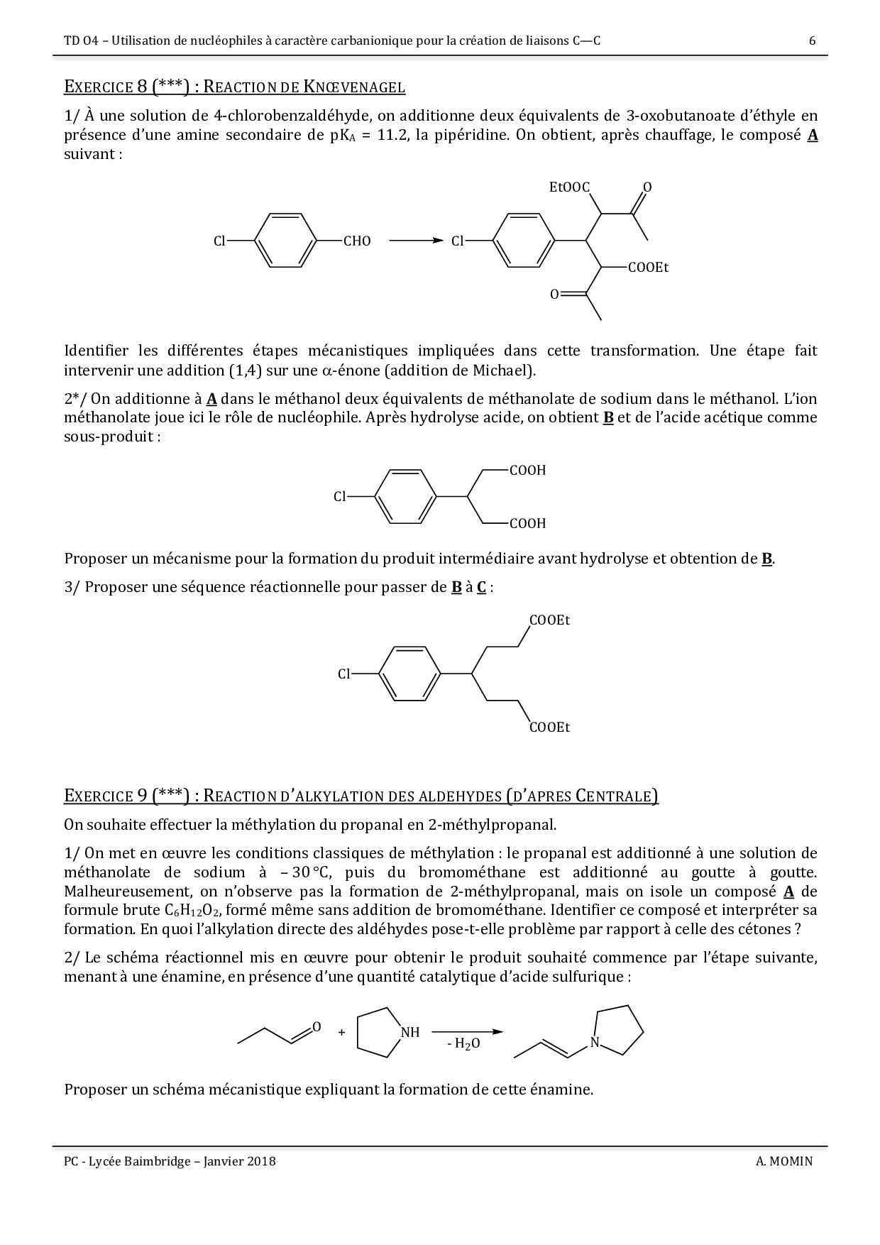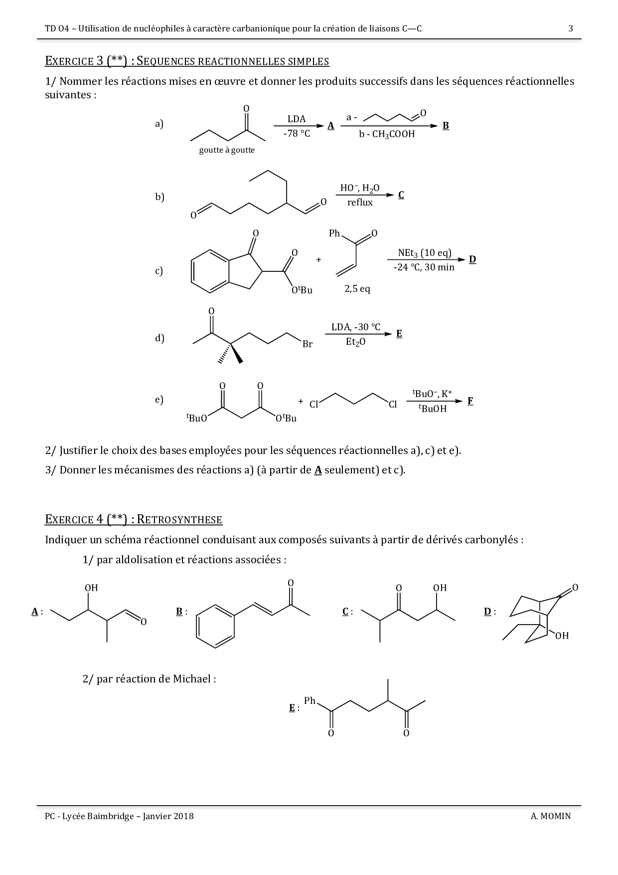 Exercices - Utilisation de nucléophiles carbanioniques pour la création de liaisons C–C