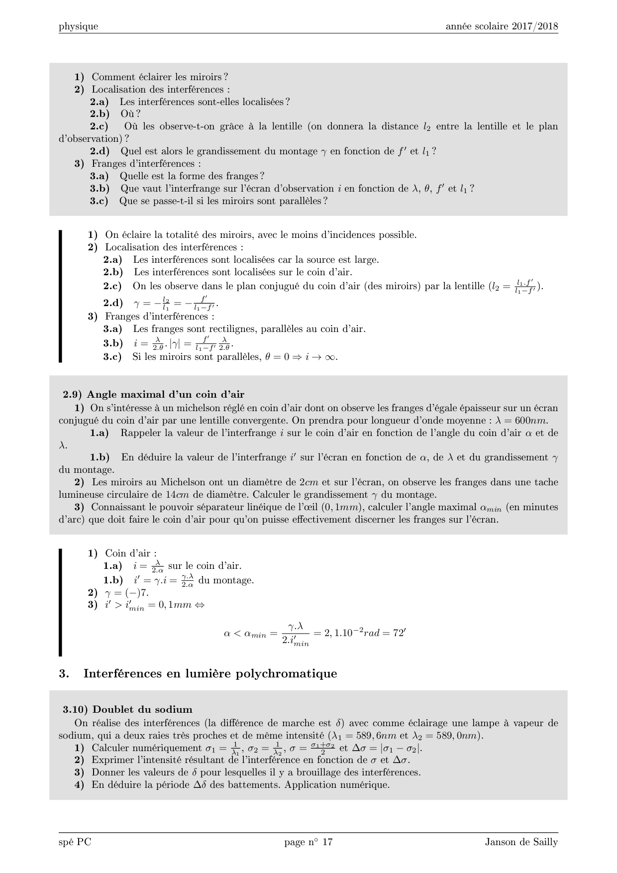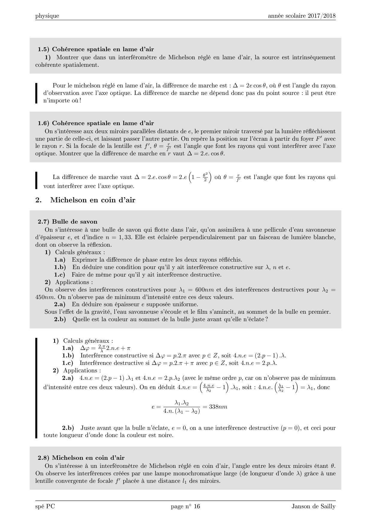 Cours - Interféromètre de Michelson