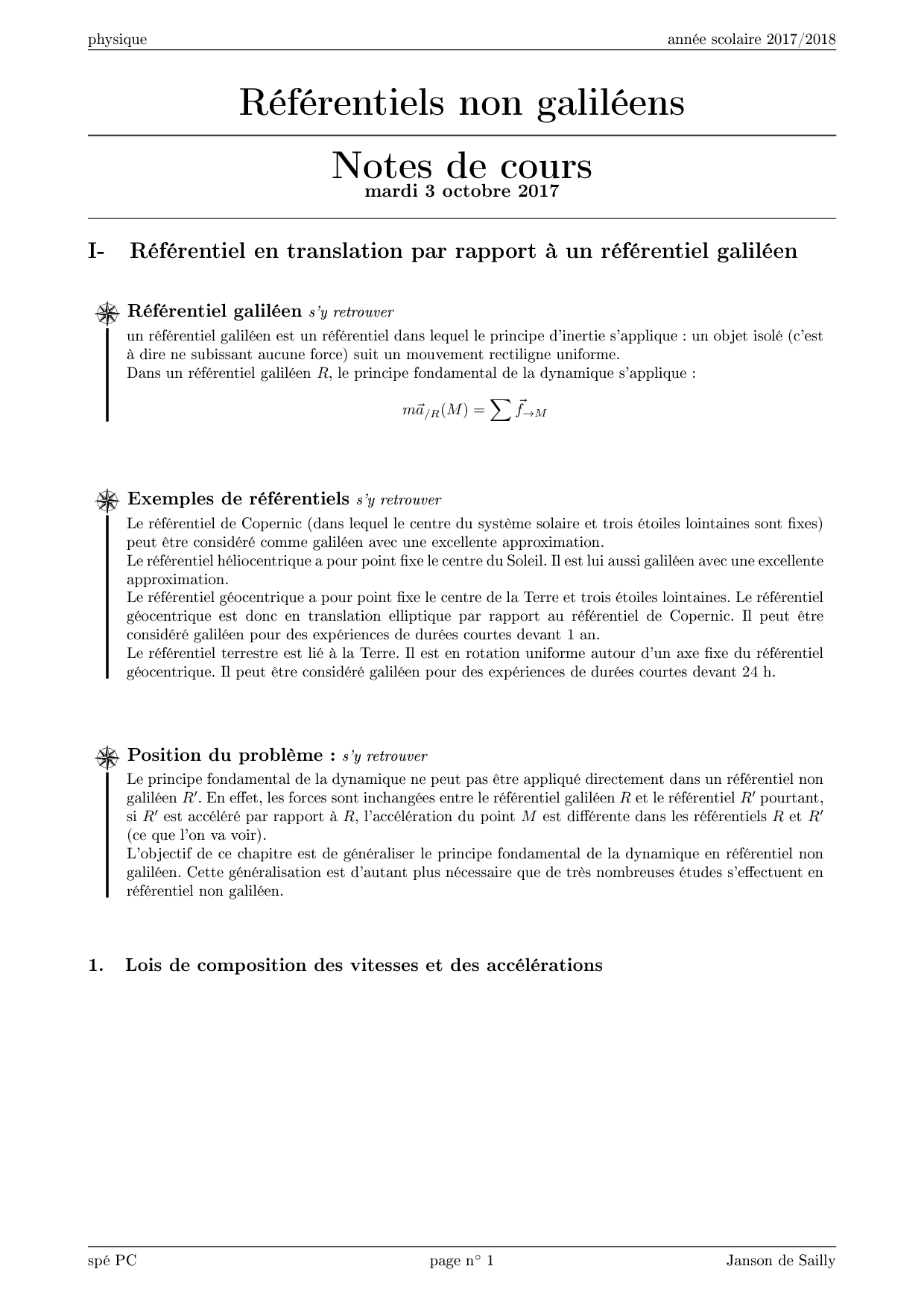 Cours - Référentiels non galiléens