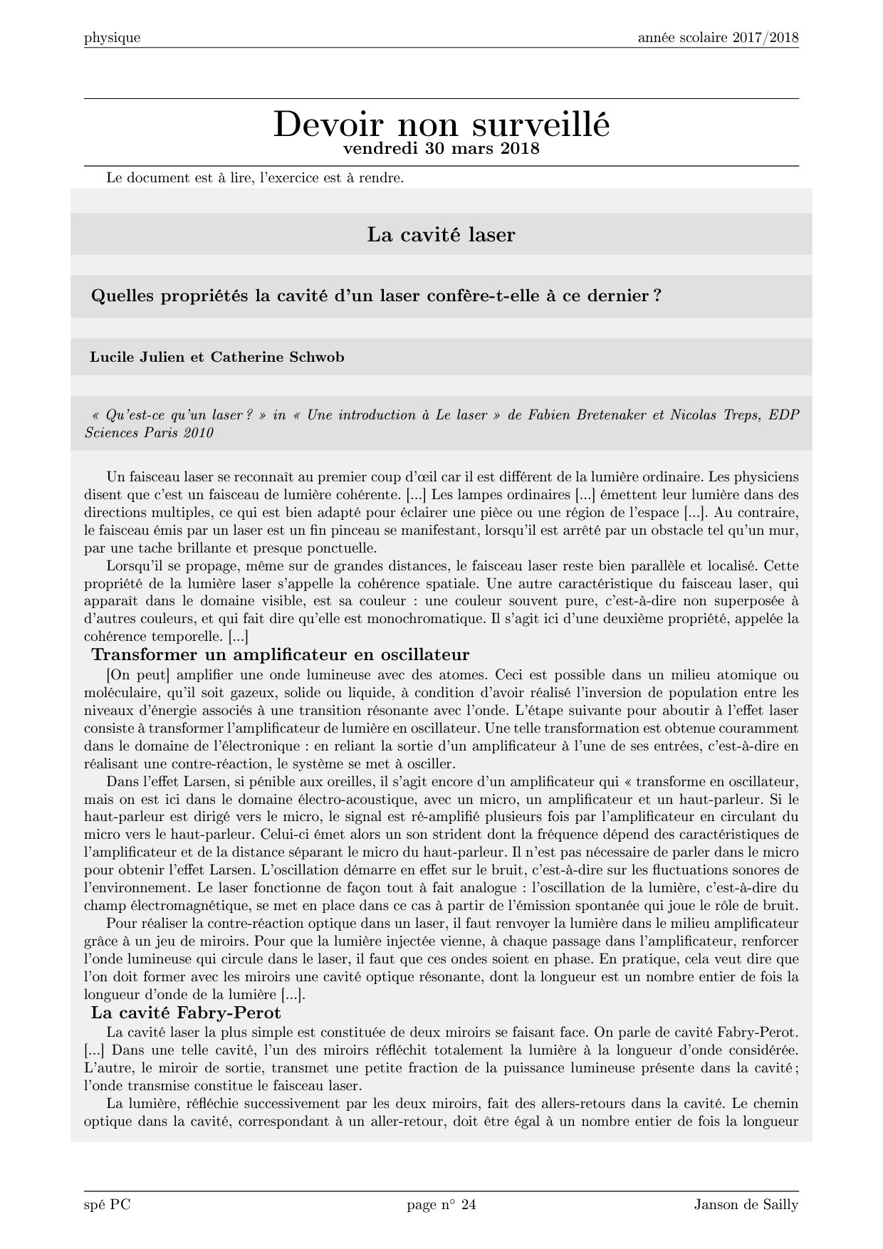 Cours - Physique du laser