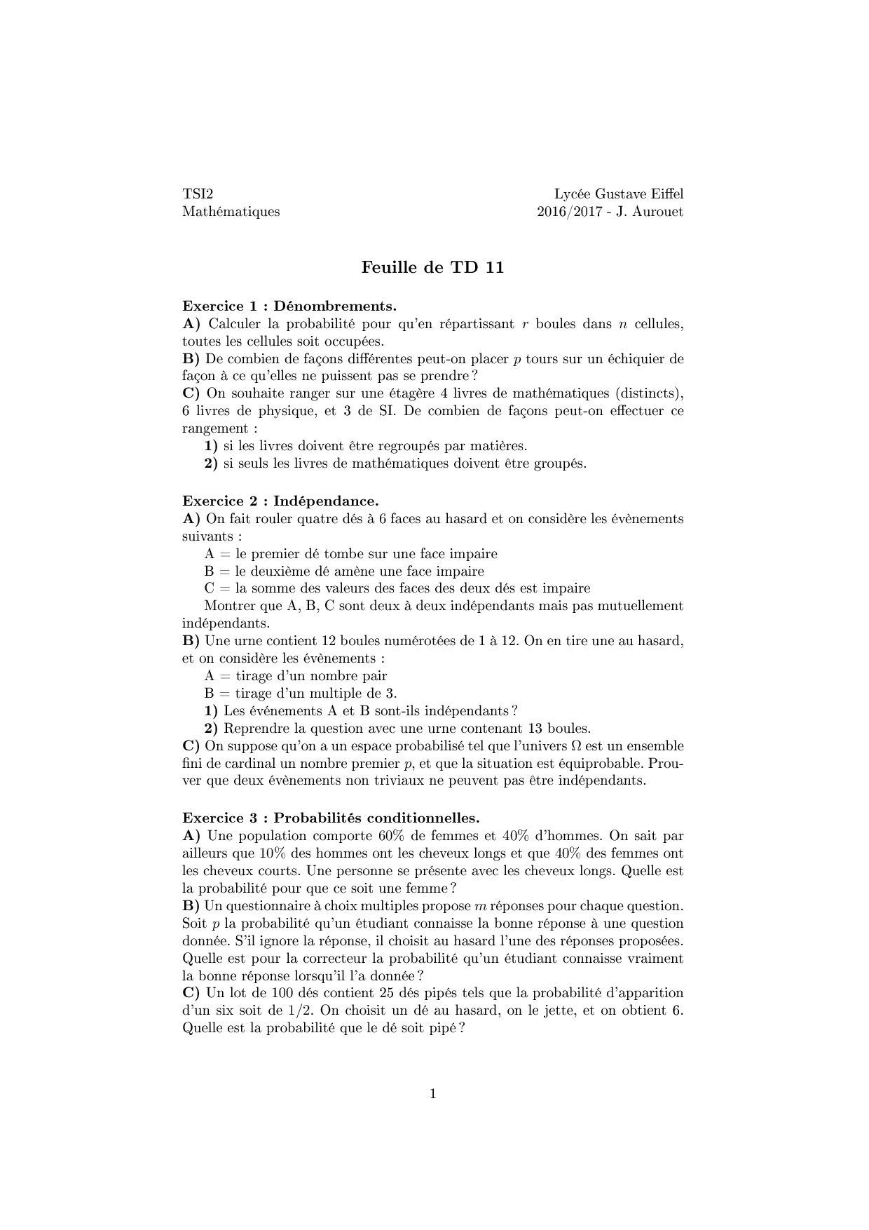 Feuille de TD 11 - Probabilités sur un univers fini