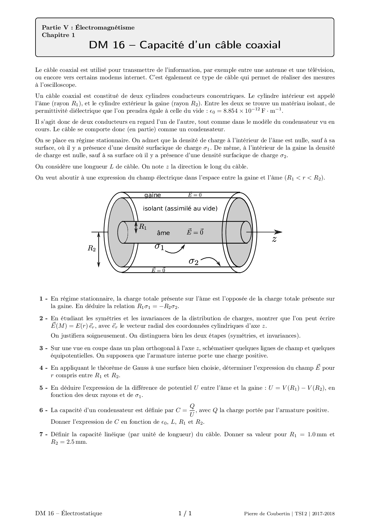 Capacité d'un cable coaxial - Enoncé