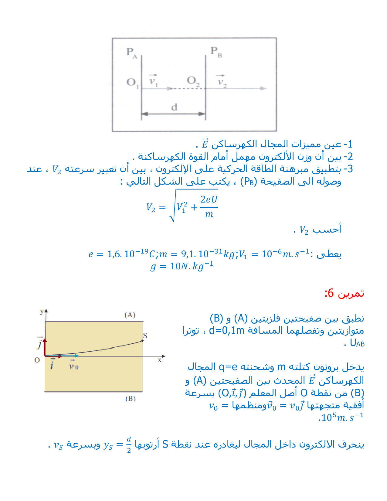 طاقة الوضع الكهرساكنة - سلسلة التمارين 1