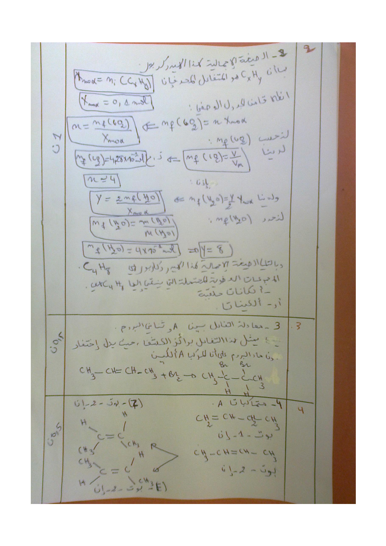 الفرض 1 نموذج 4 - الفيزياء والكيمياء أولى باك علوم رياضية الدورة الثانية (التصحيح)