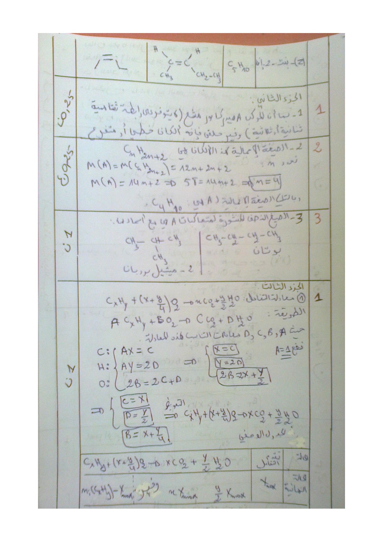الفرض 1 نموذج 4 - الفيزياء والكيمياء أولى باك علوم رياضية الدورة الثانية (التصحيح)
