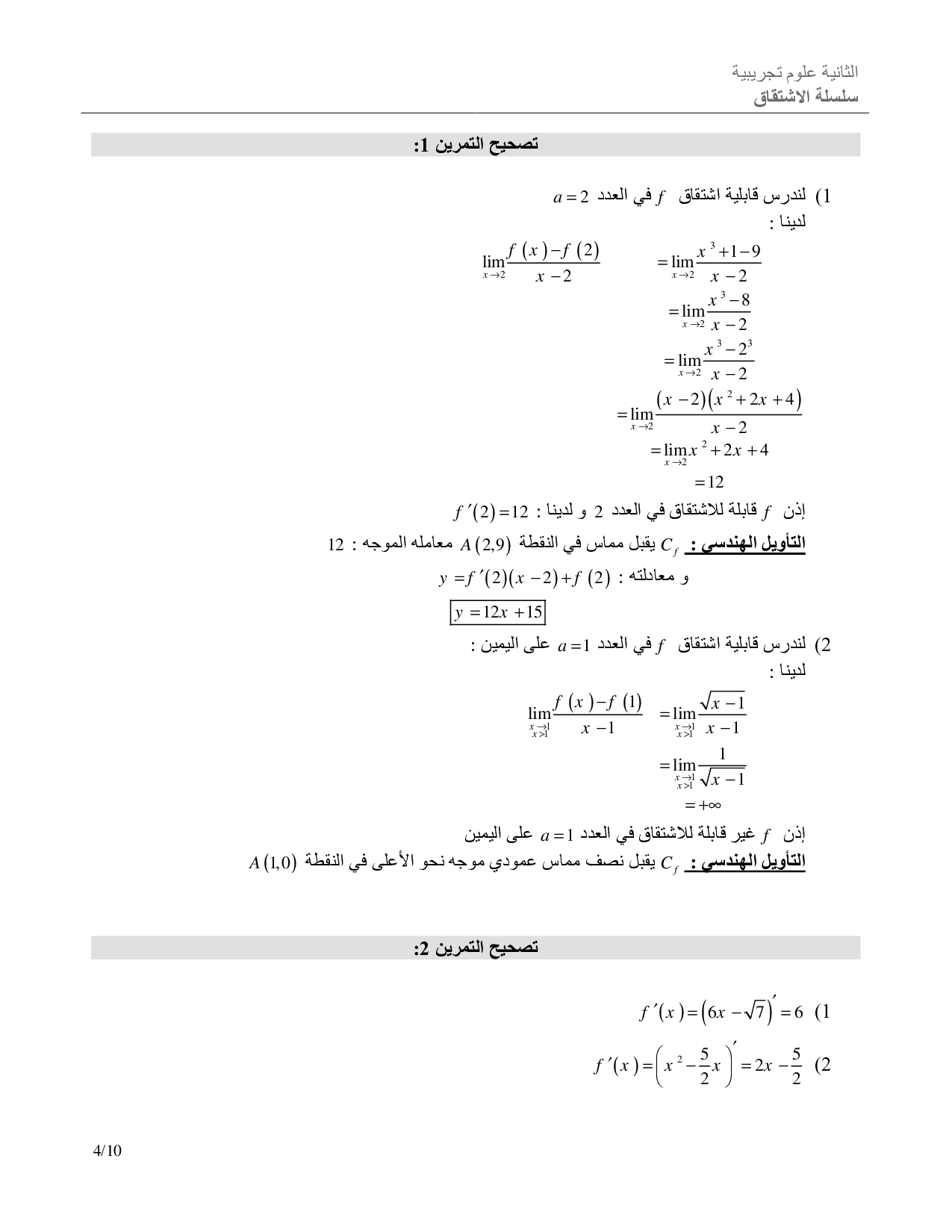 الاشتقاق - تصحيح سلسلة التمارين 2
