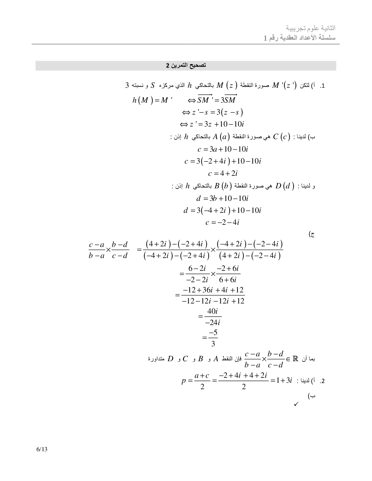 الأعداد العقدية 2 - تصحيح سلسلة التمارين 3