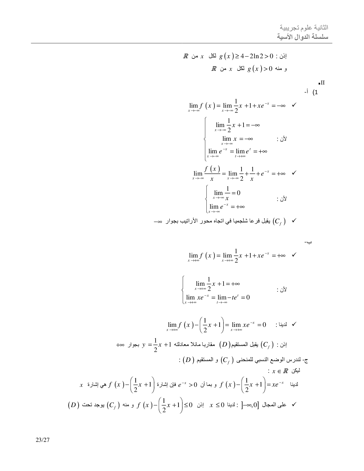 الدوال الأسية - تصحيح سلسلة التمارين 1