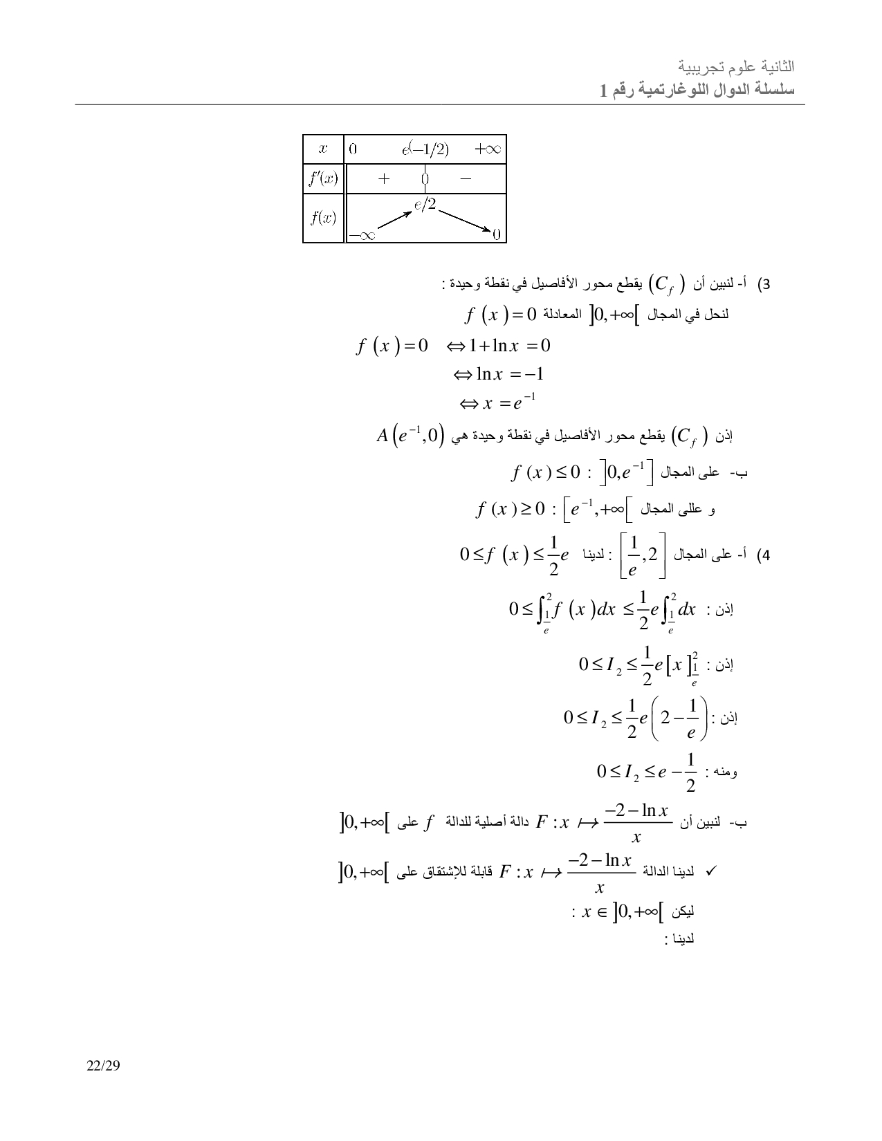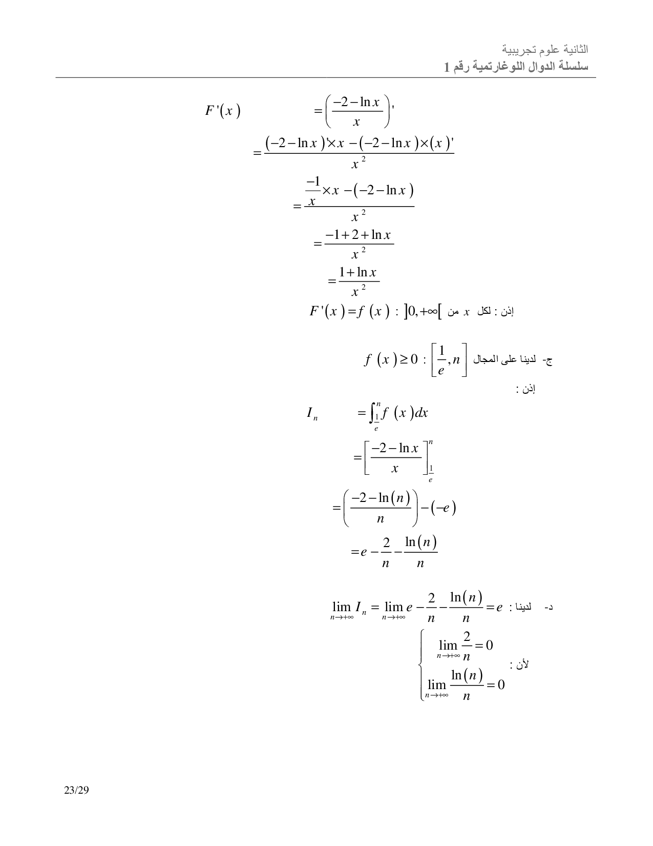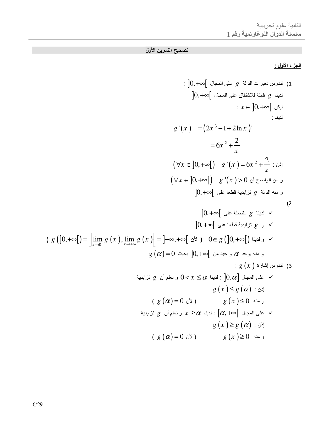 الدوال اللوغاريتمية - تصحيح سلسلة التمارين 4