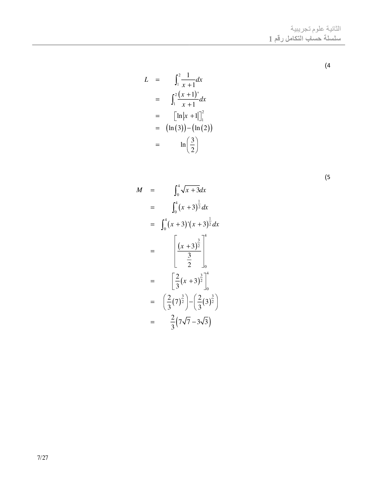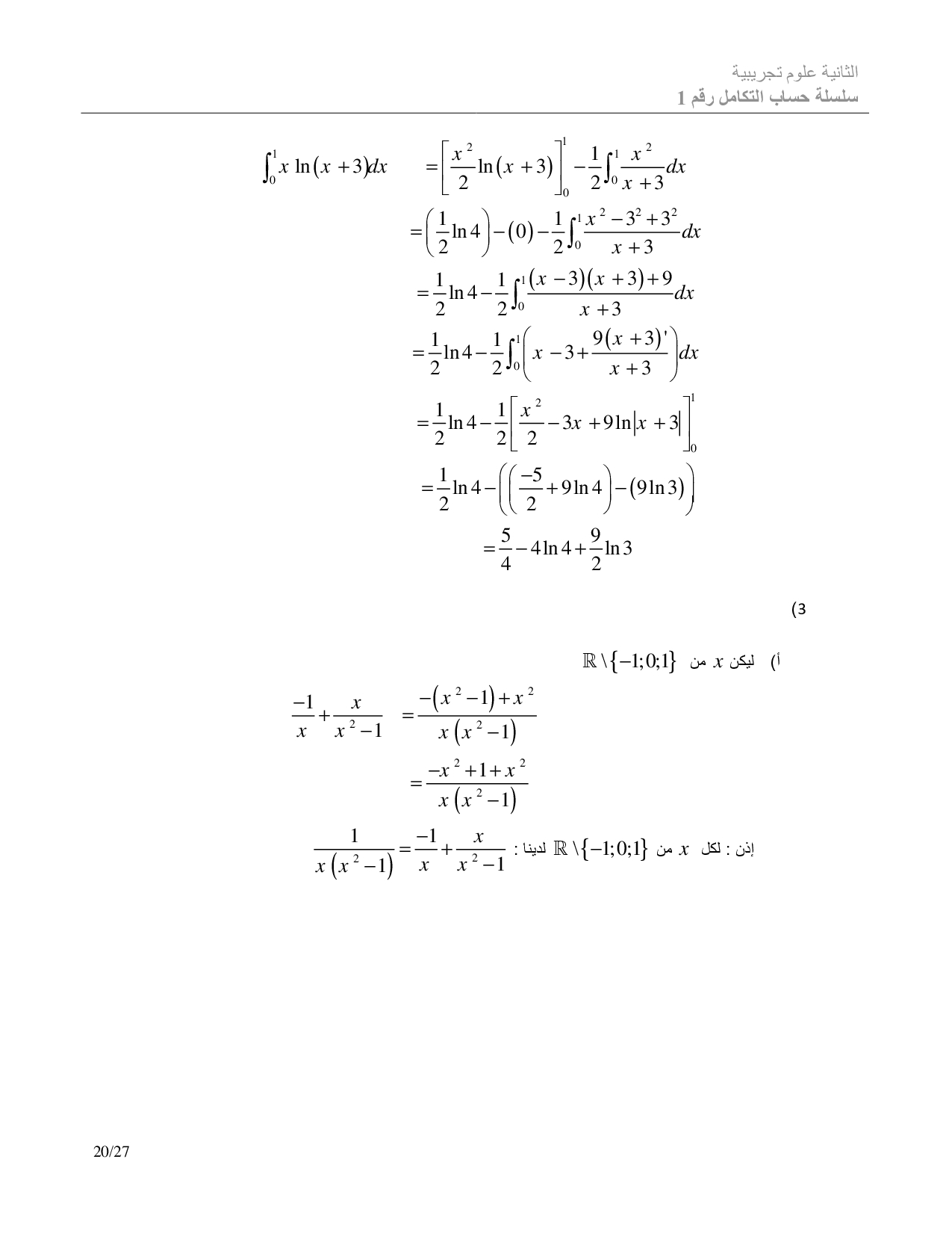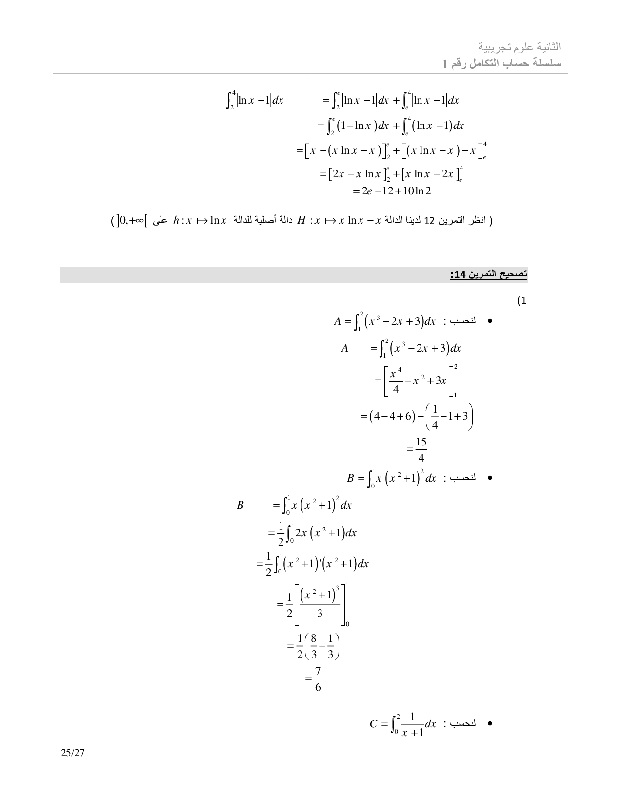 الحساب التكاملي - تصحيح سلسلة التمارين 1