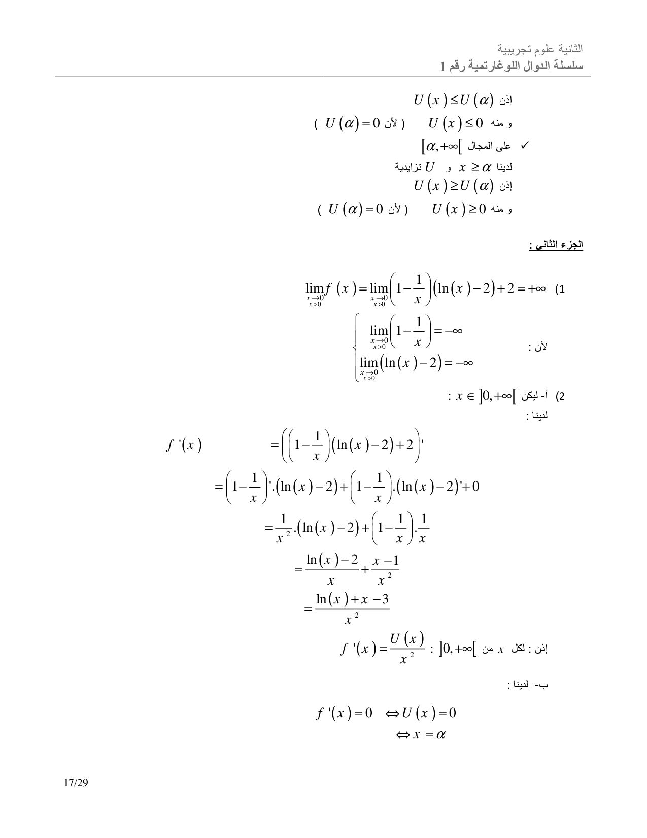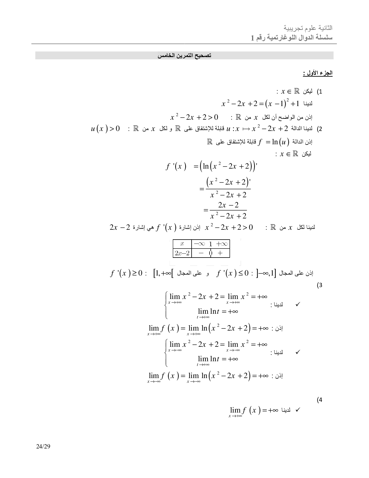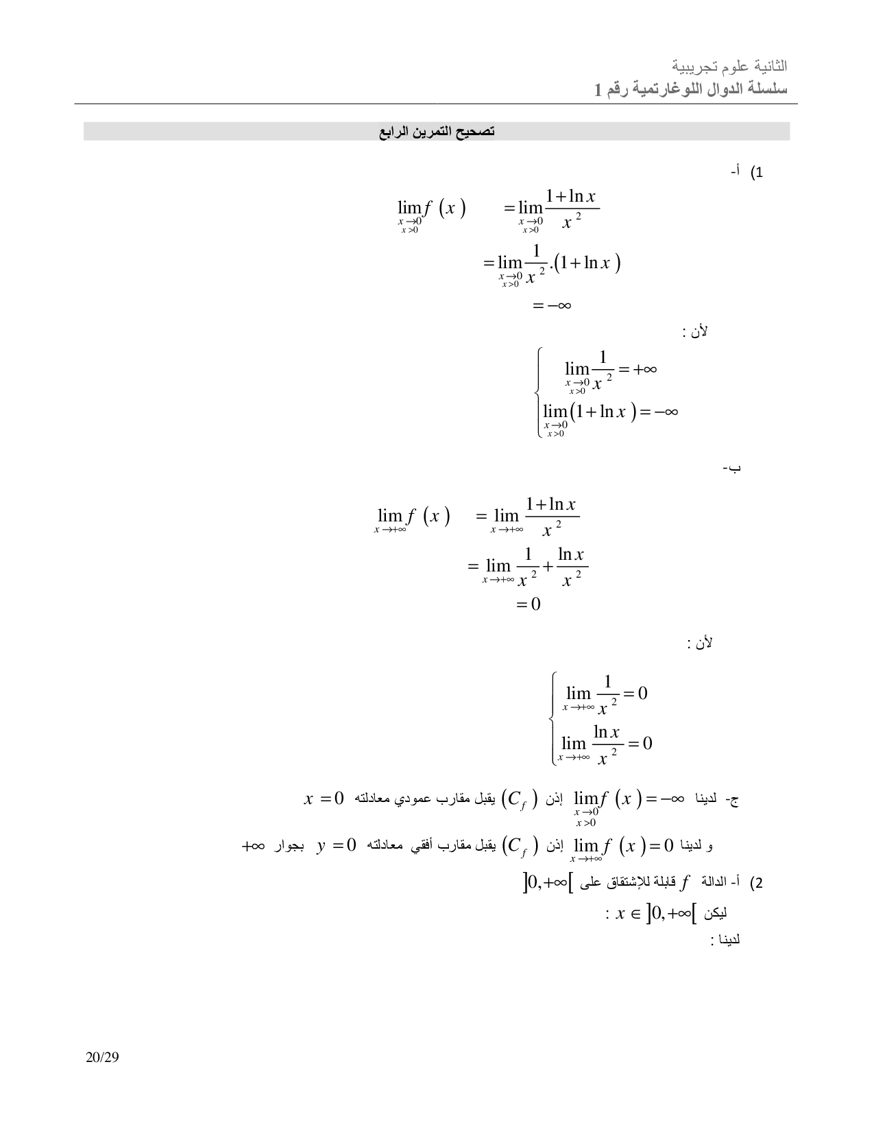 الدوال اللوغاريتمية - تصحيح سلسلة التمارين 4