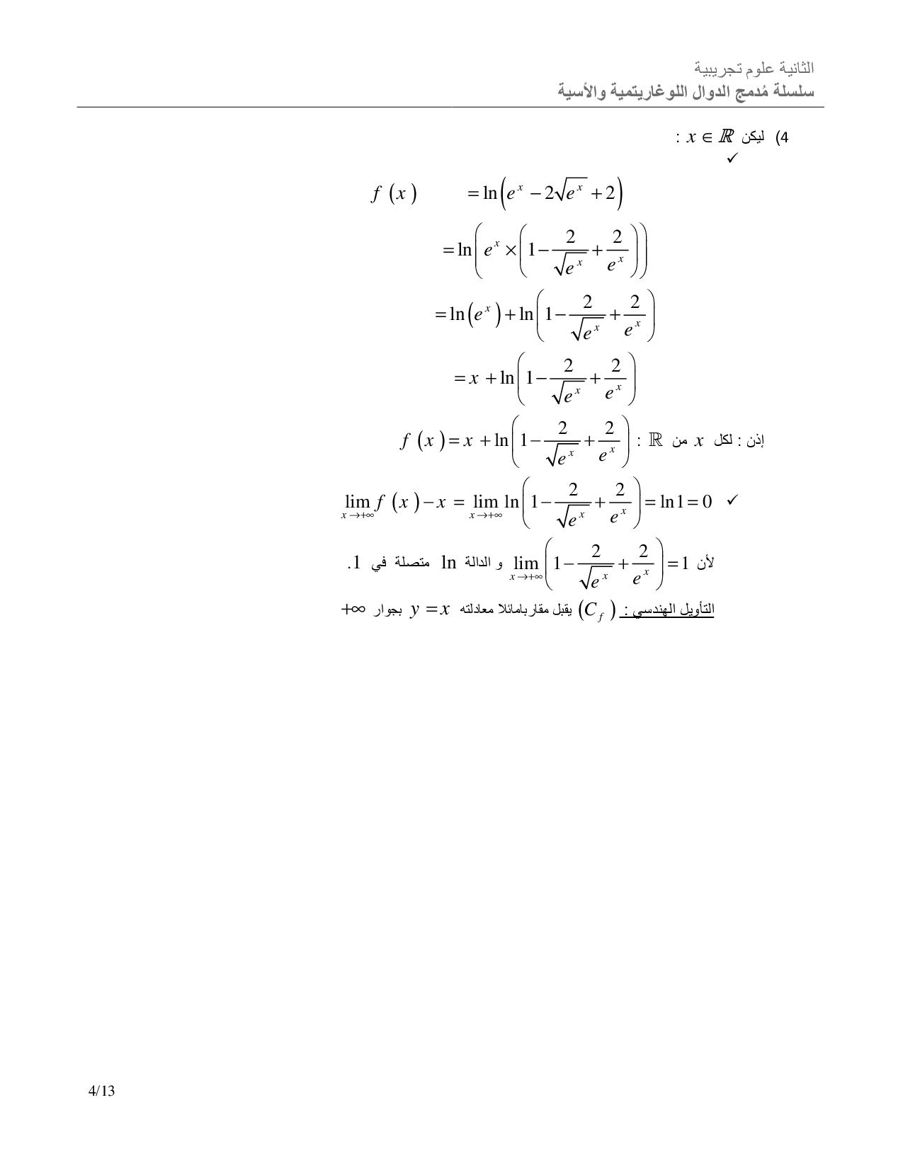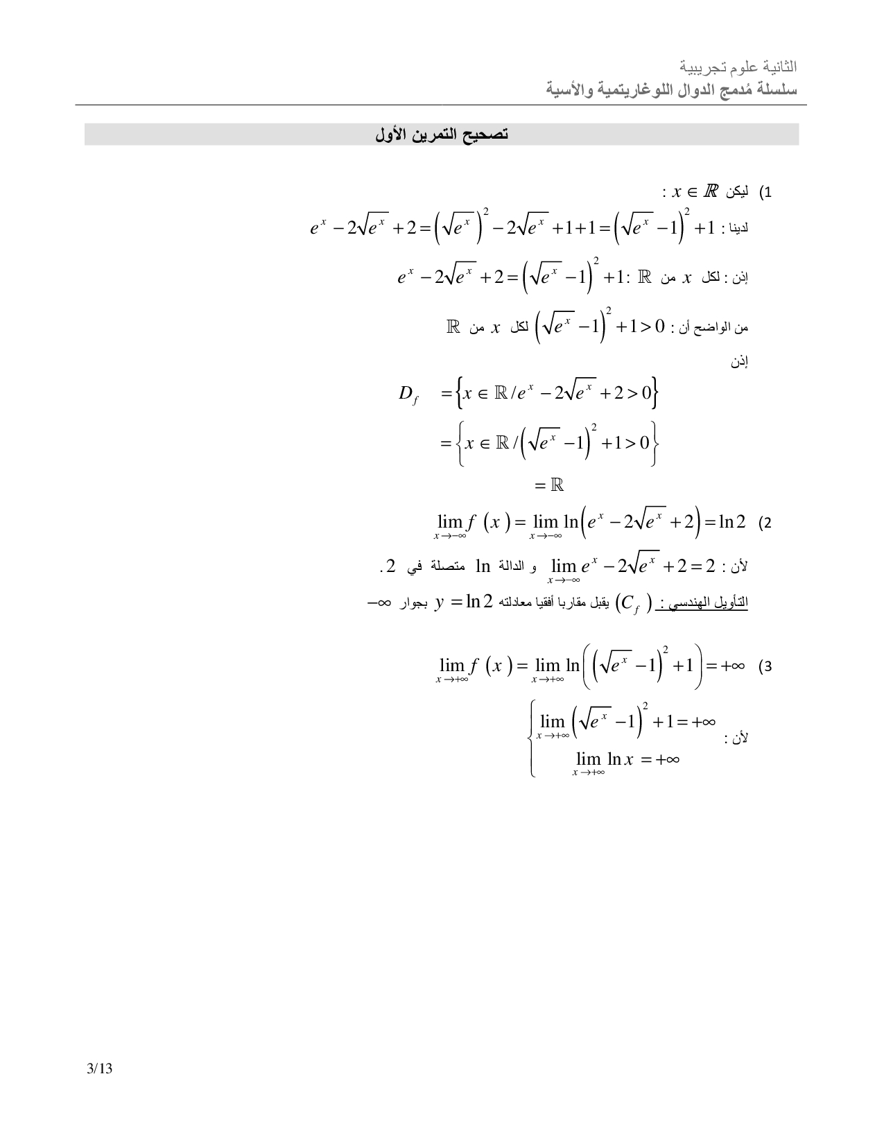 الدوال اللوغاريتمية والأسية - تصحيح سلسلة التمارين 1