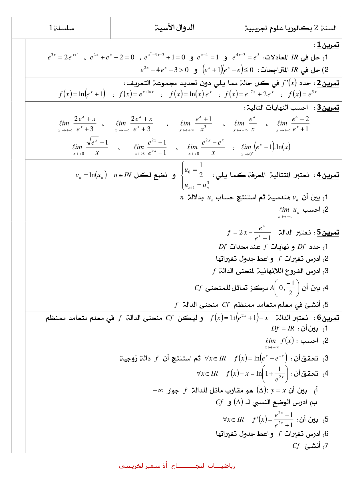 الدوال الأسية - سلسلة التمارين 2