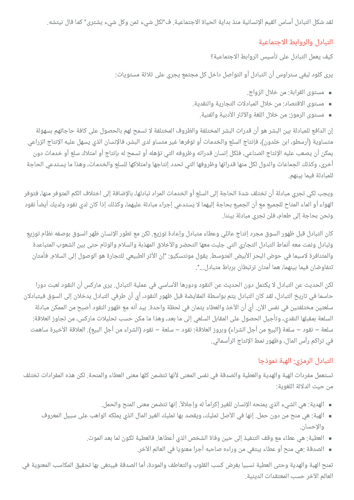 مفهوم التبادل (شعبة الآداب والعلوم الإنسانية)