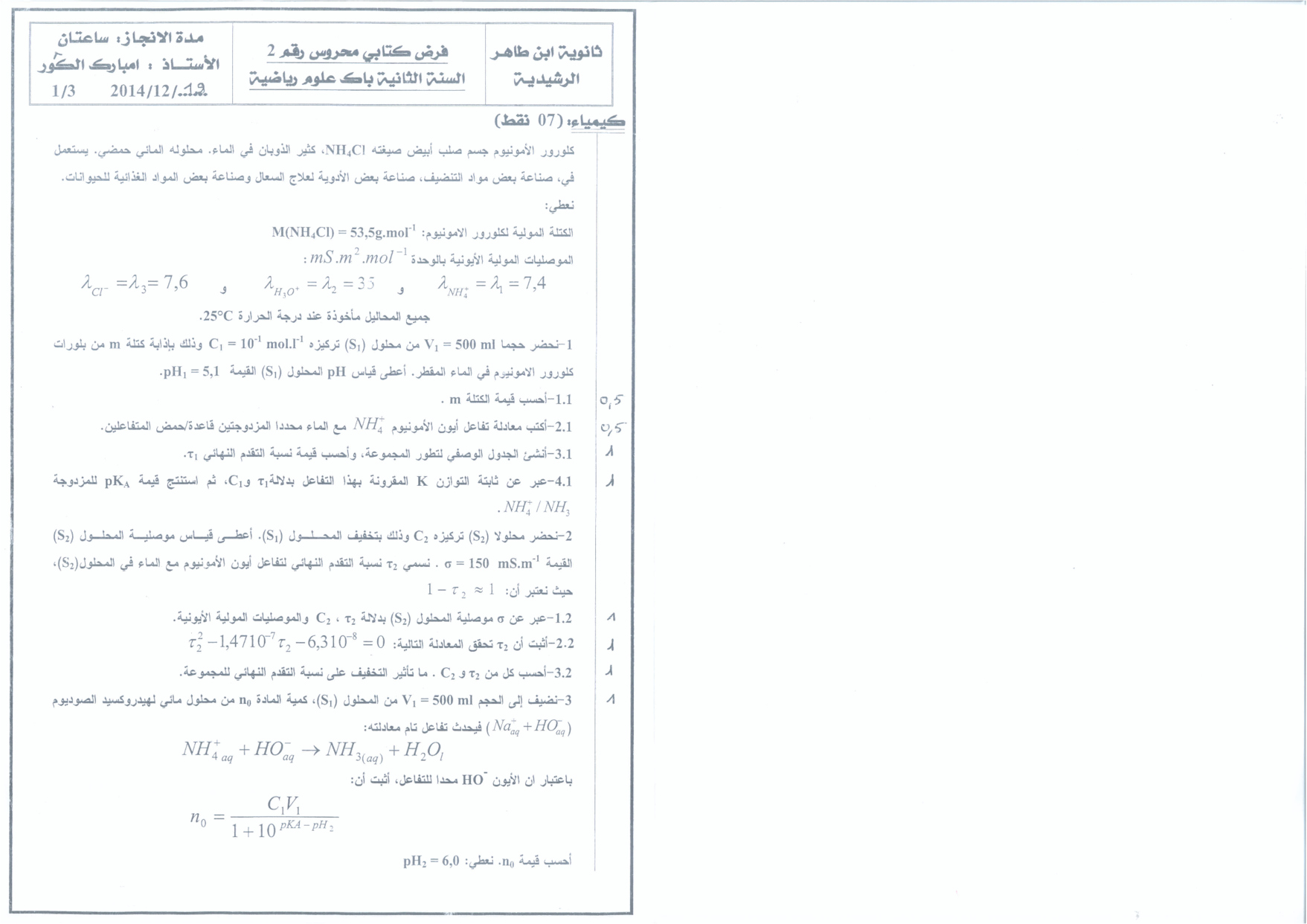 الفرض 2 نموذج 9 - الفيزياء والكيمياء ثانية باك علوم رياضية الدورة الثانية