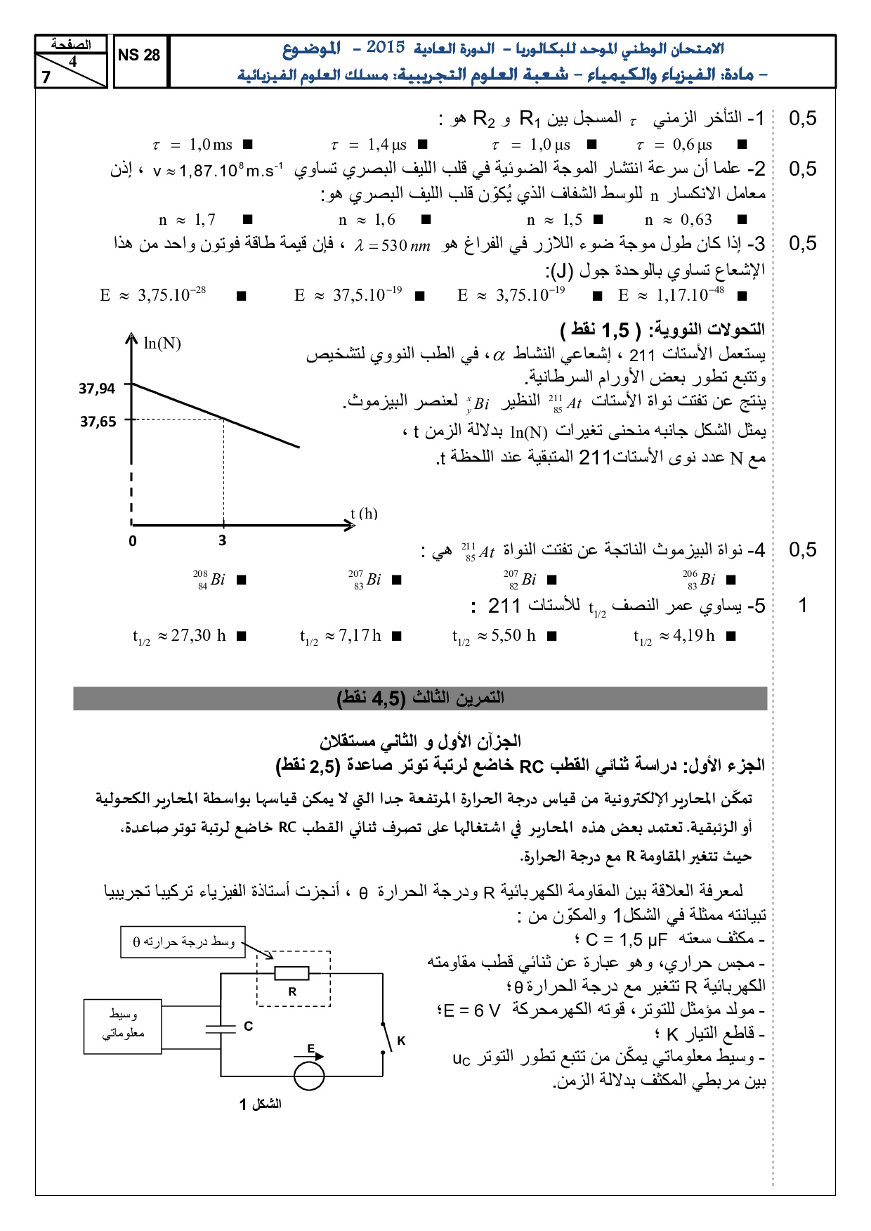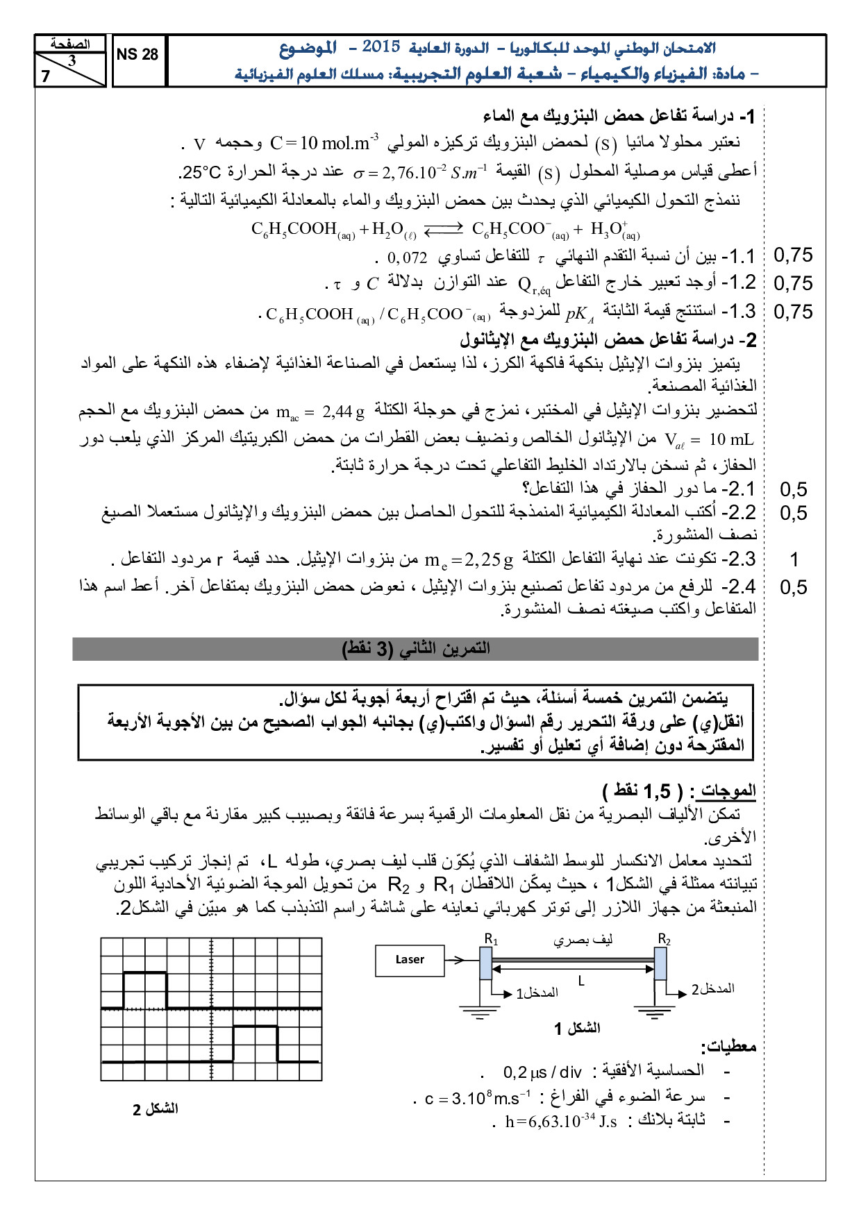 الفيزياء والكيمياء علوم فيزيائية 2015 الدورة العادية - الموضوع