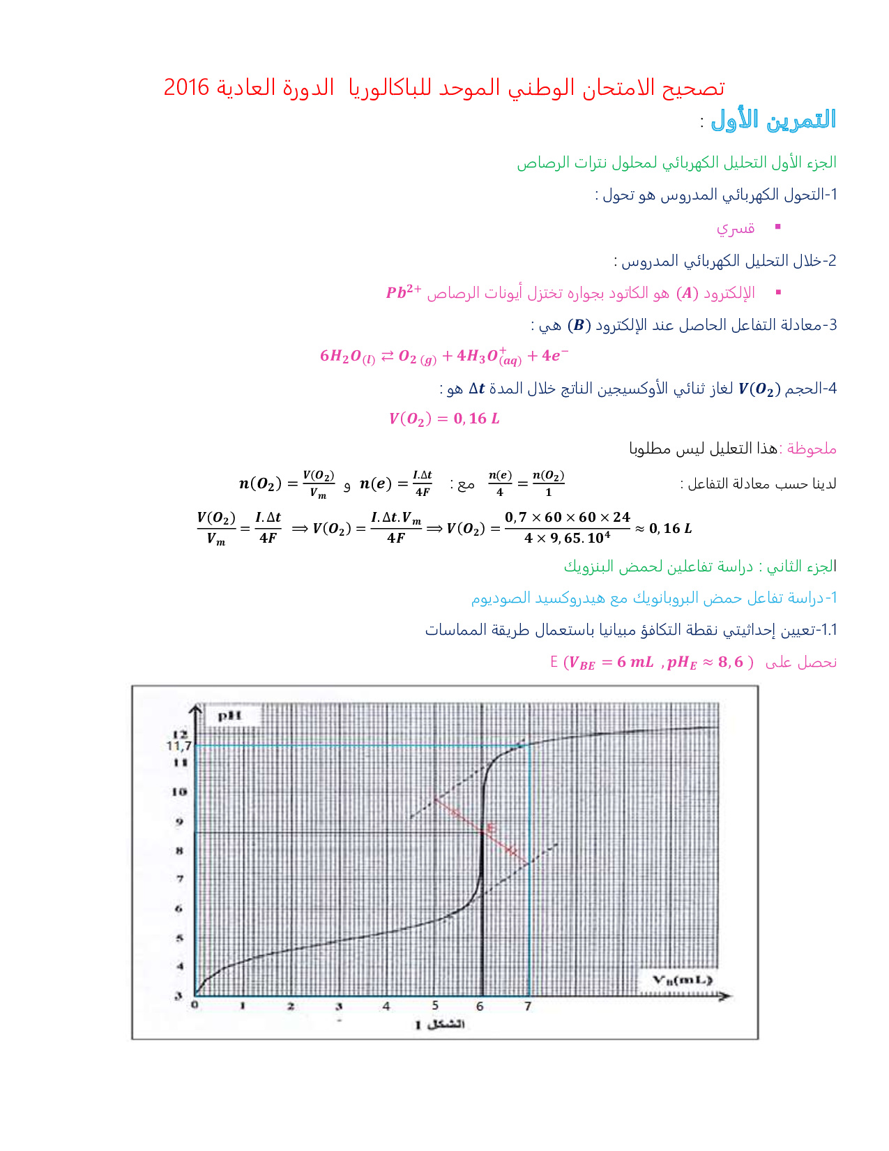 الفيزياء والكيمياء علوم فيزيائية 2016 الدورة العادية - التصحيح