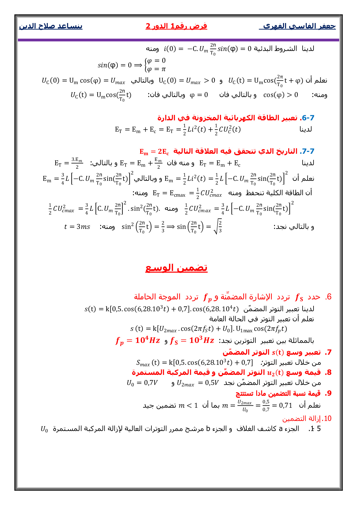 فروض الدورة الثانية (علوم فيزيائية)