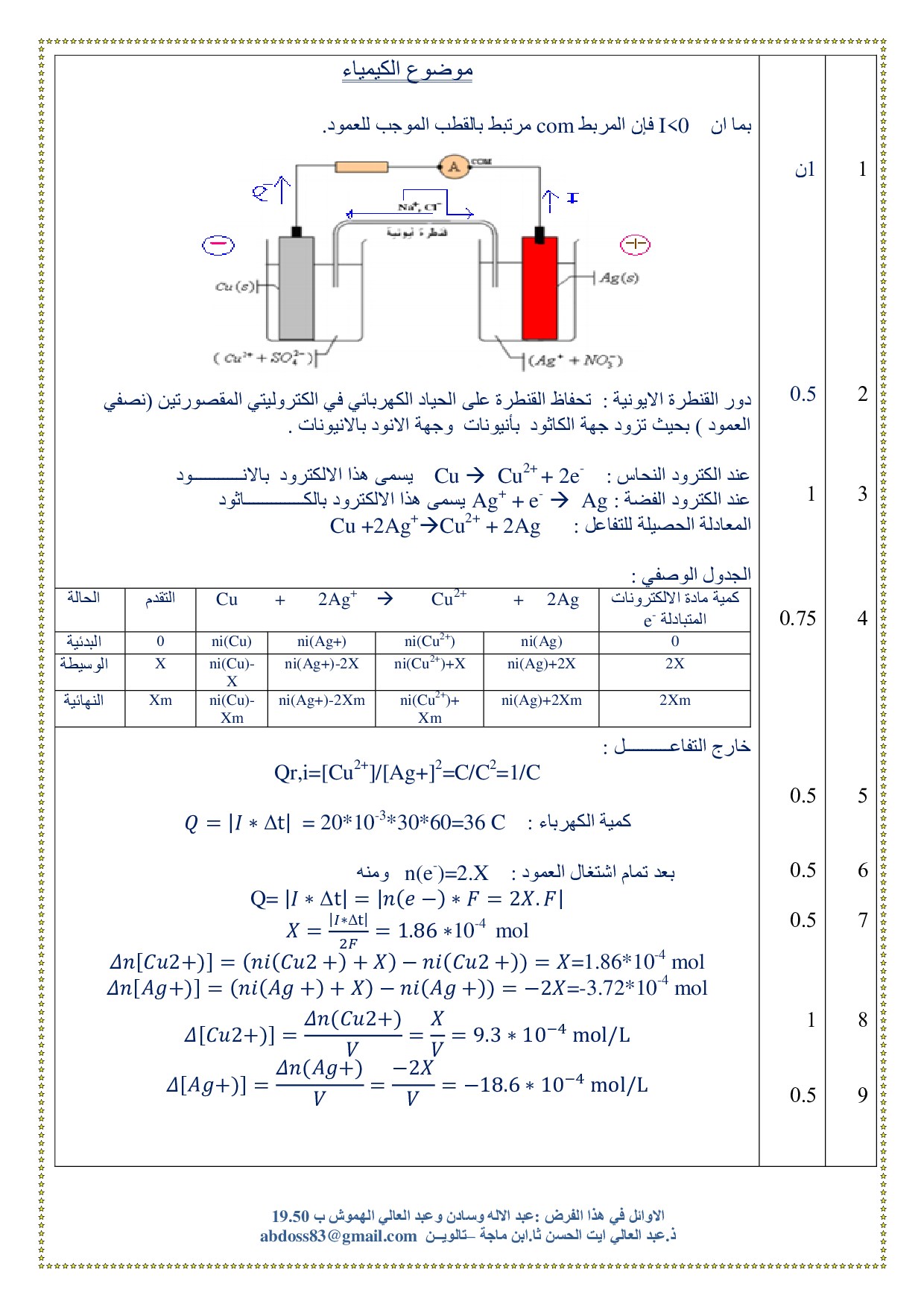 الفرض 1 نموذج 6 - الفيزياء والكيمياء ثانية باك علوم فيزيائية الدورة الثانية (التصحيح)