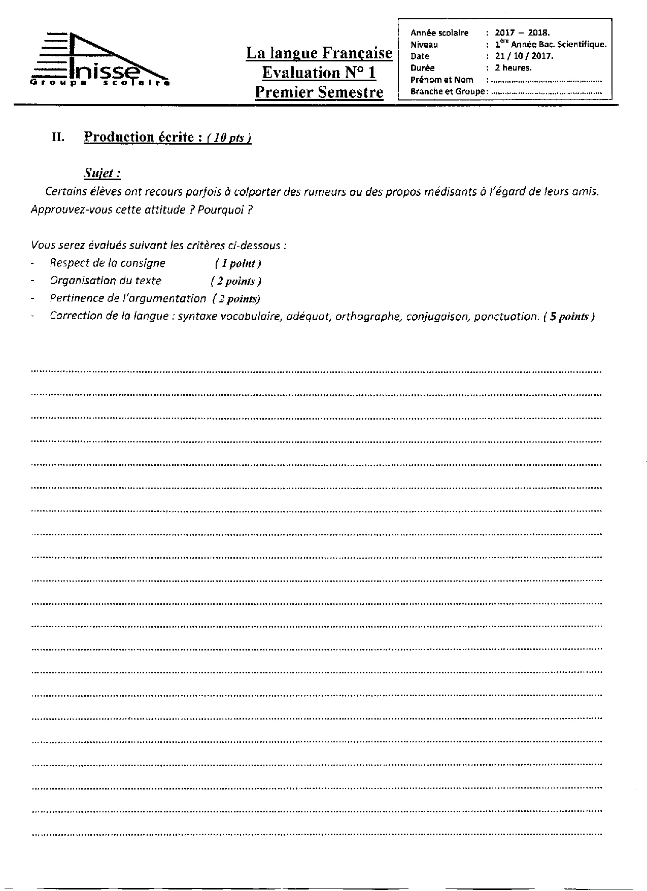 Français: 1er BAC Sciences Economiques et Gestion