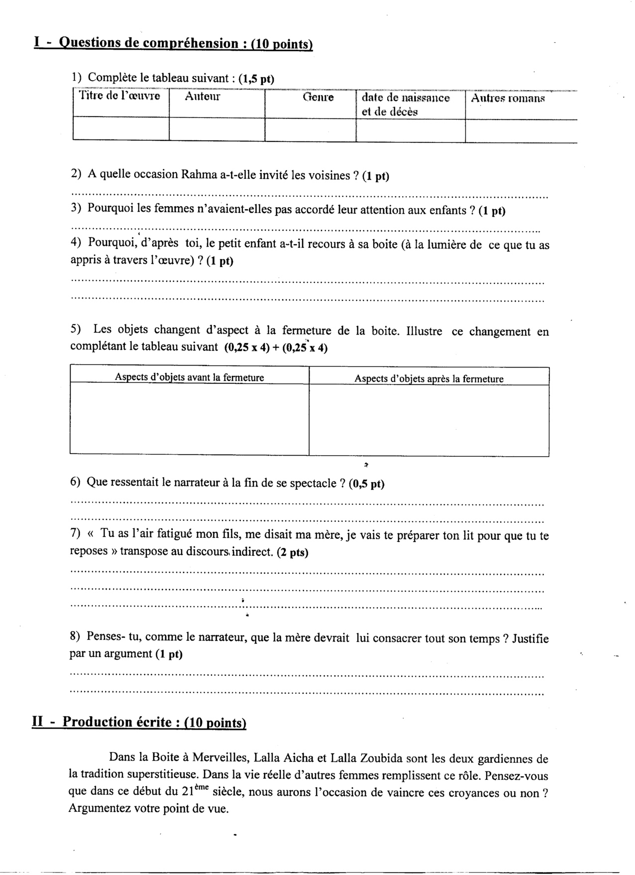 Devoir 1 Modèle 6 - Français 1er Bac Semestre 1