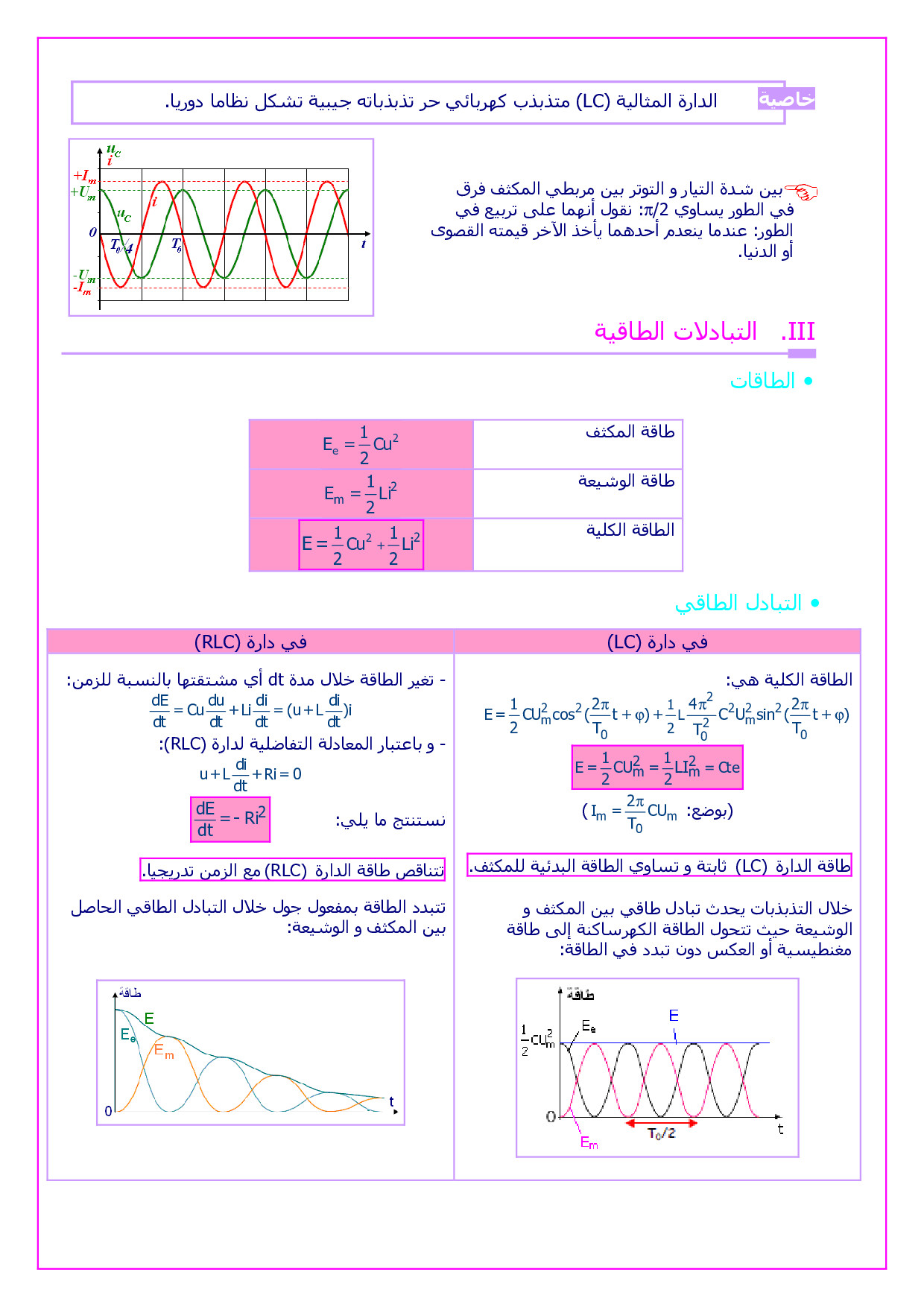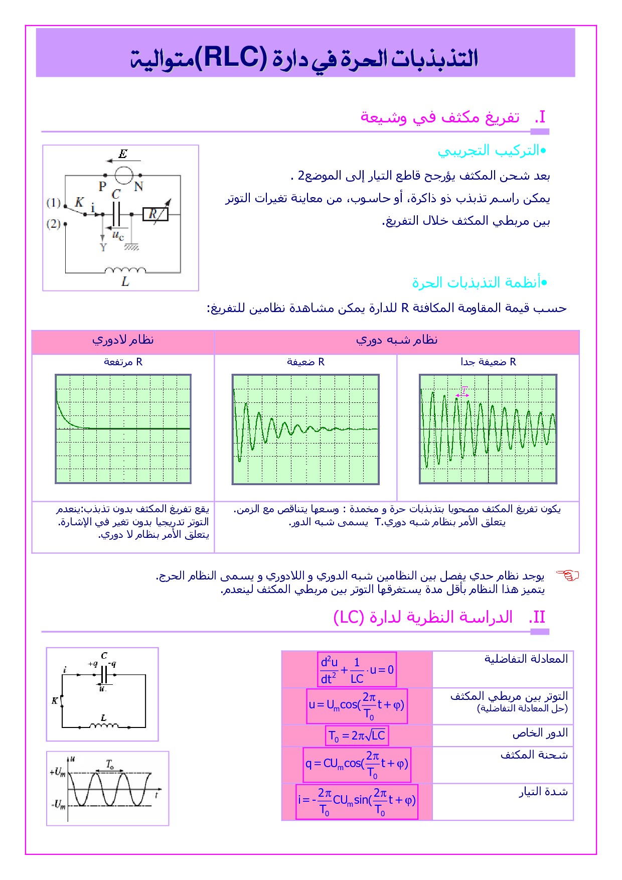 التذبذبات الحرة في دارة RLC متوالية - ملخص الدرس 2