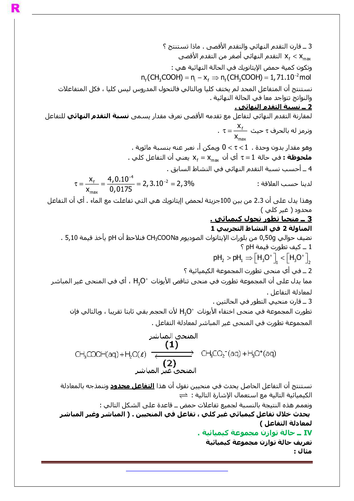 التحولات الكيميائية التي تحدث في منحيين - الدرس 4