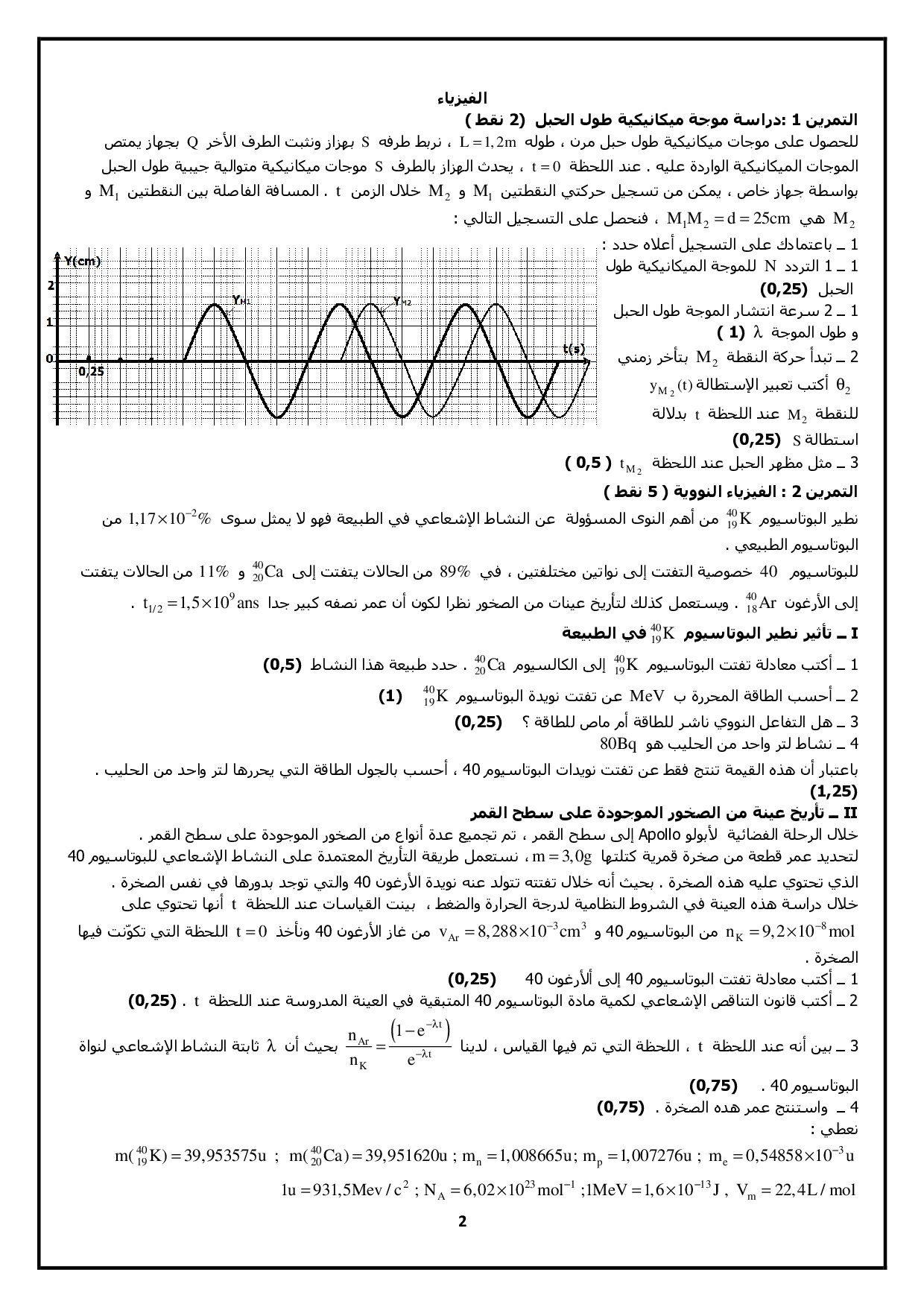 الفرض 2 نموذج 5 - الفيزياء والكيمياء ثانية باك علوم رياضية الدورة الأولى