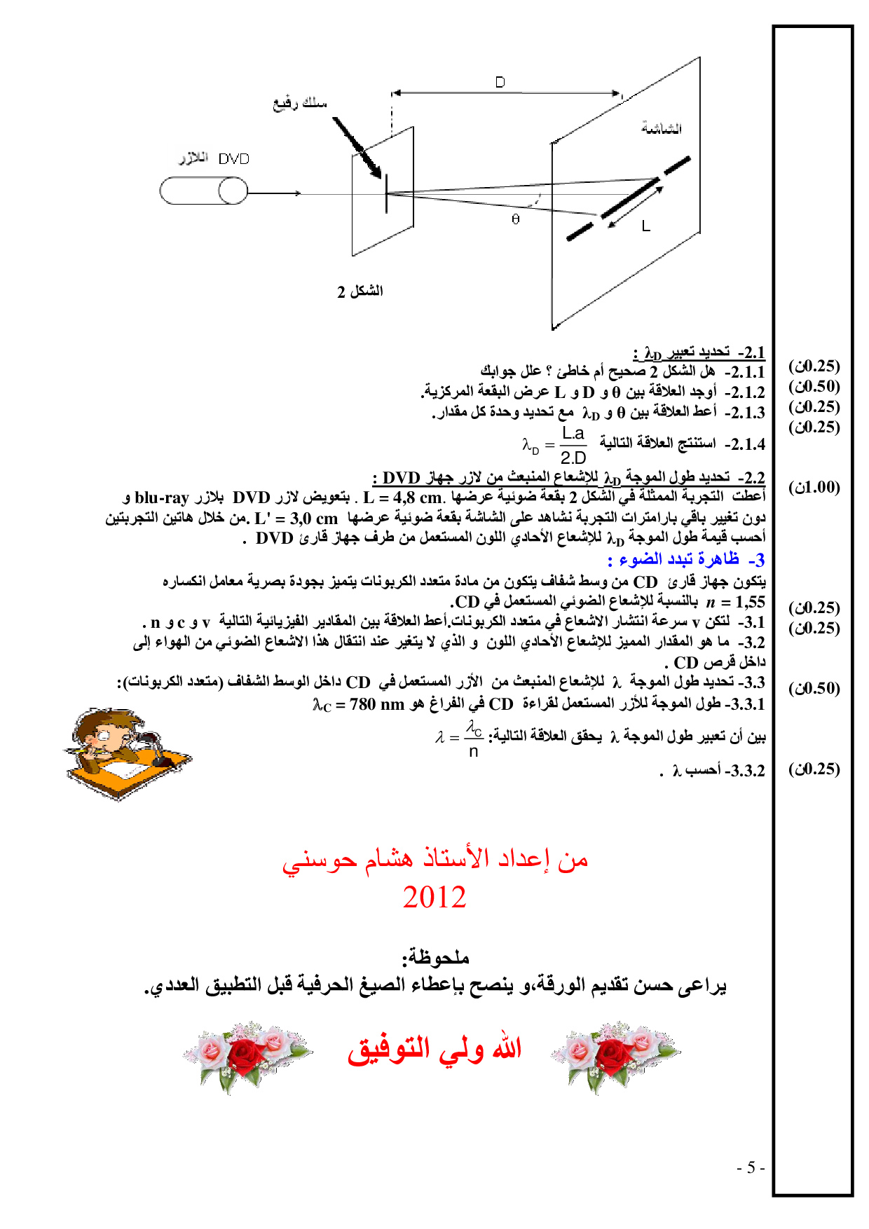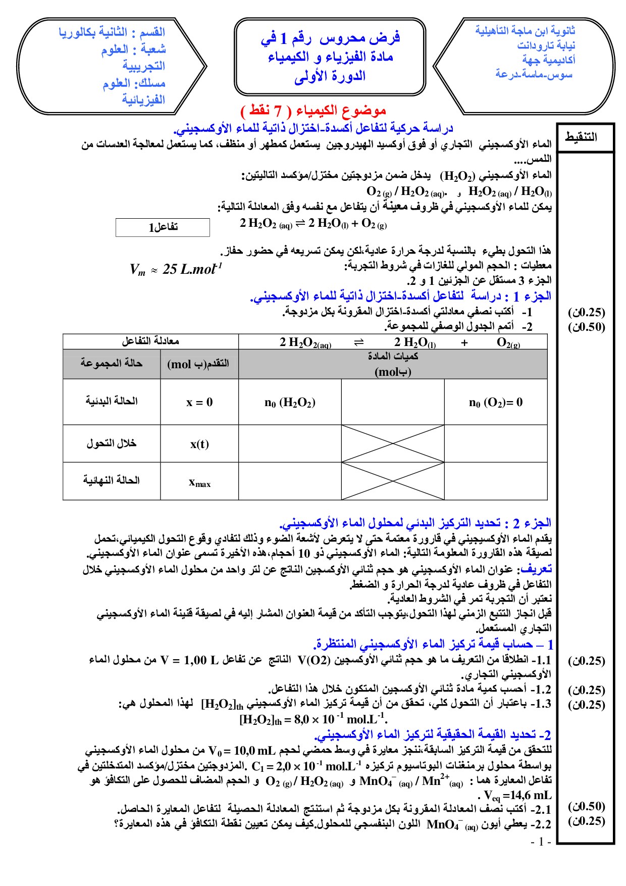 الفرض 1 نموذج 11 - الفيزياء والكيمياء ثانية باك علوم فيزيائية الدورة الأولى