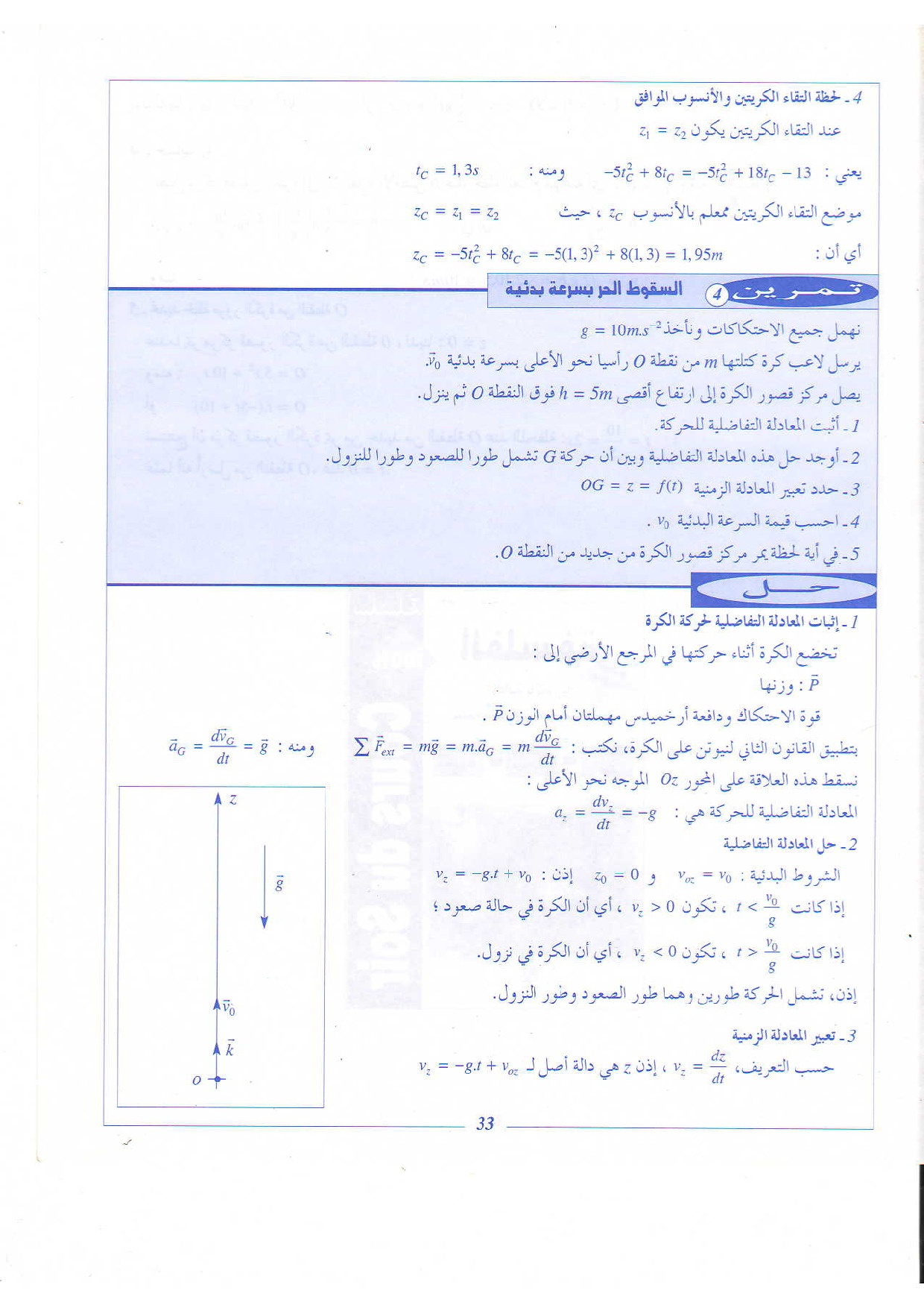 السقوط الرأسي لجسم صلب - تمارين محلولة 1