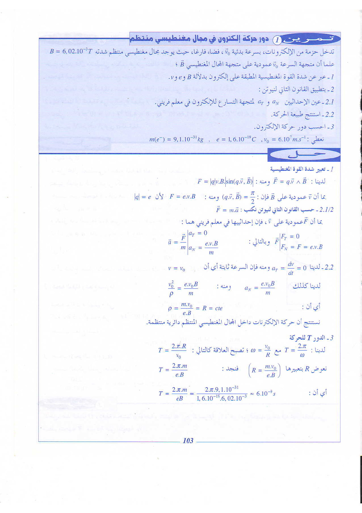 حركة دقيقة مشحونة في مجال مغنطيسي منتظم - تمارين محلولة 1