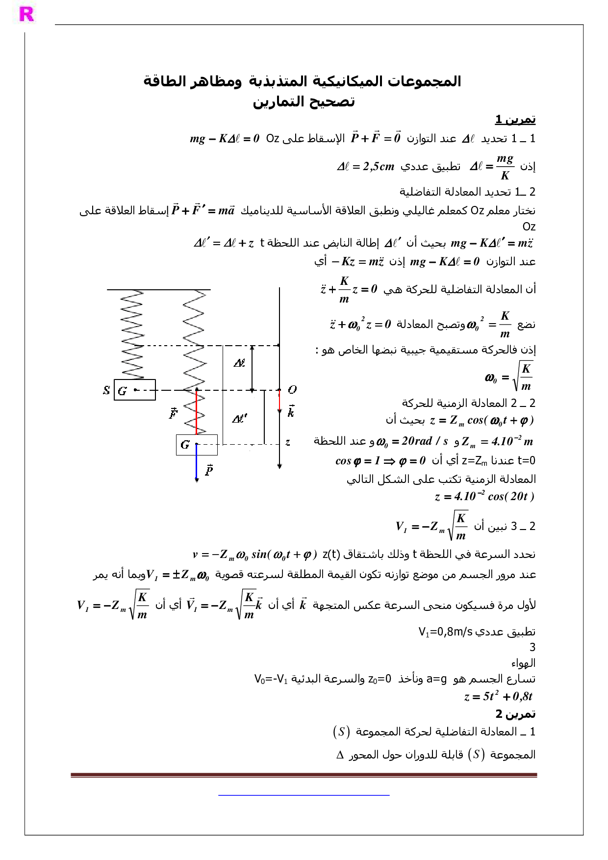 المجموعات الميكانيكية المتذبذبة - تصحيح سلسلة التمارين 1