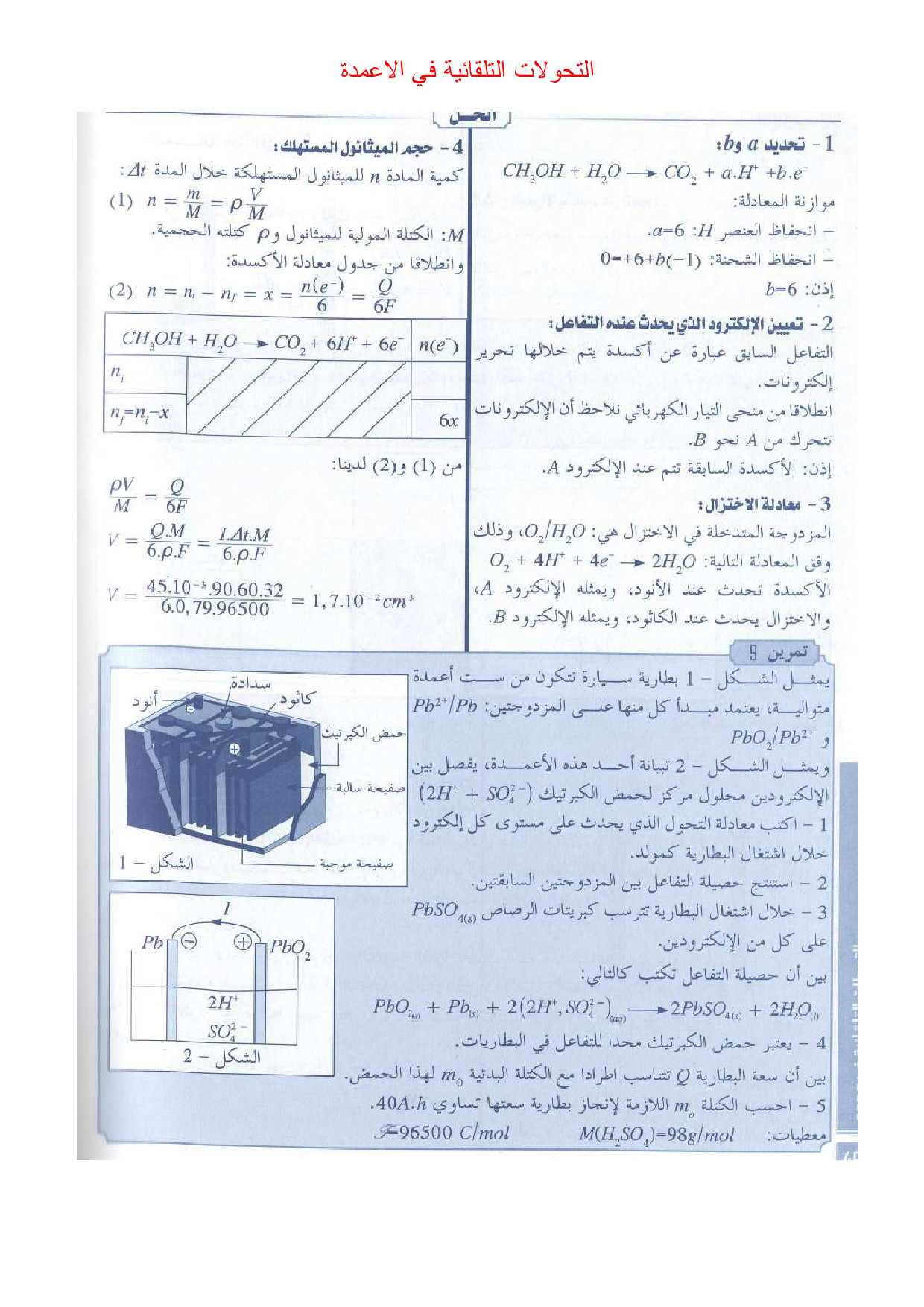 التحولات التلقائية في الأعمدة وتحصيل الطاقة - تمارين محلولة 1