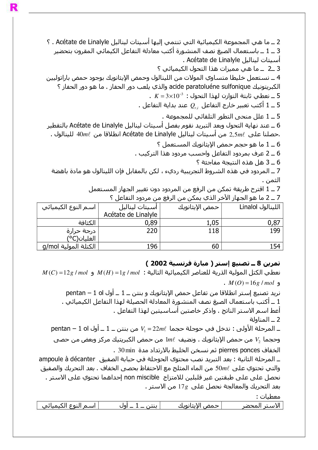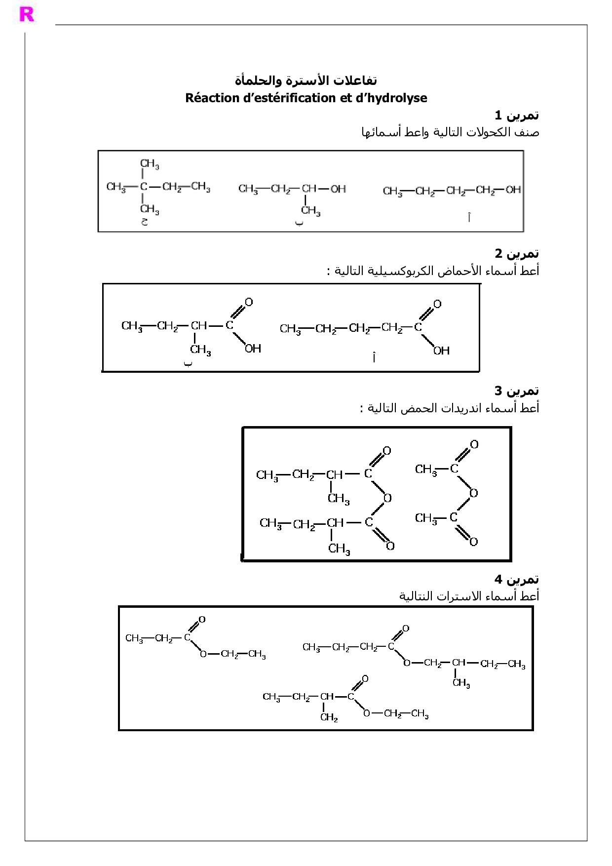تفاعلات الأسترة والحلمأة - تمارين غير محلولة 3