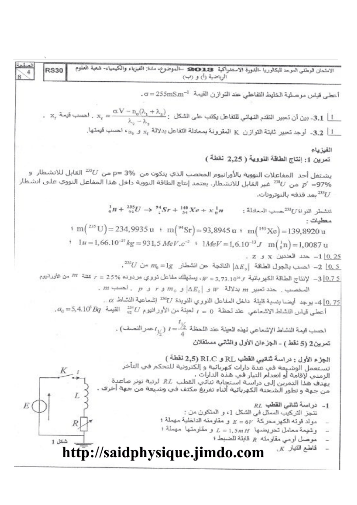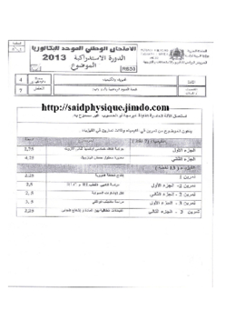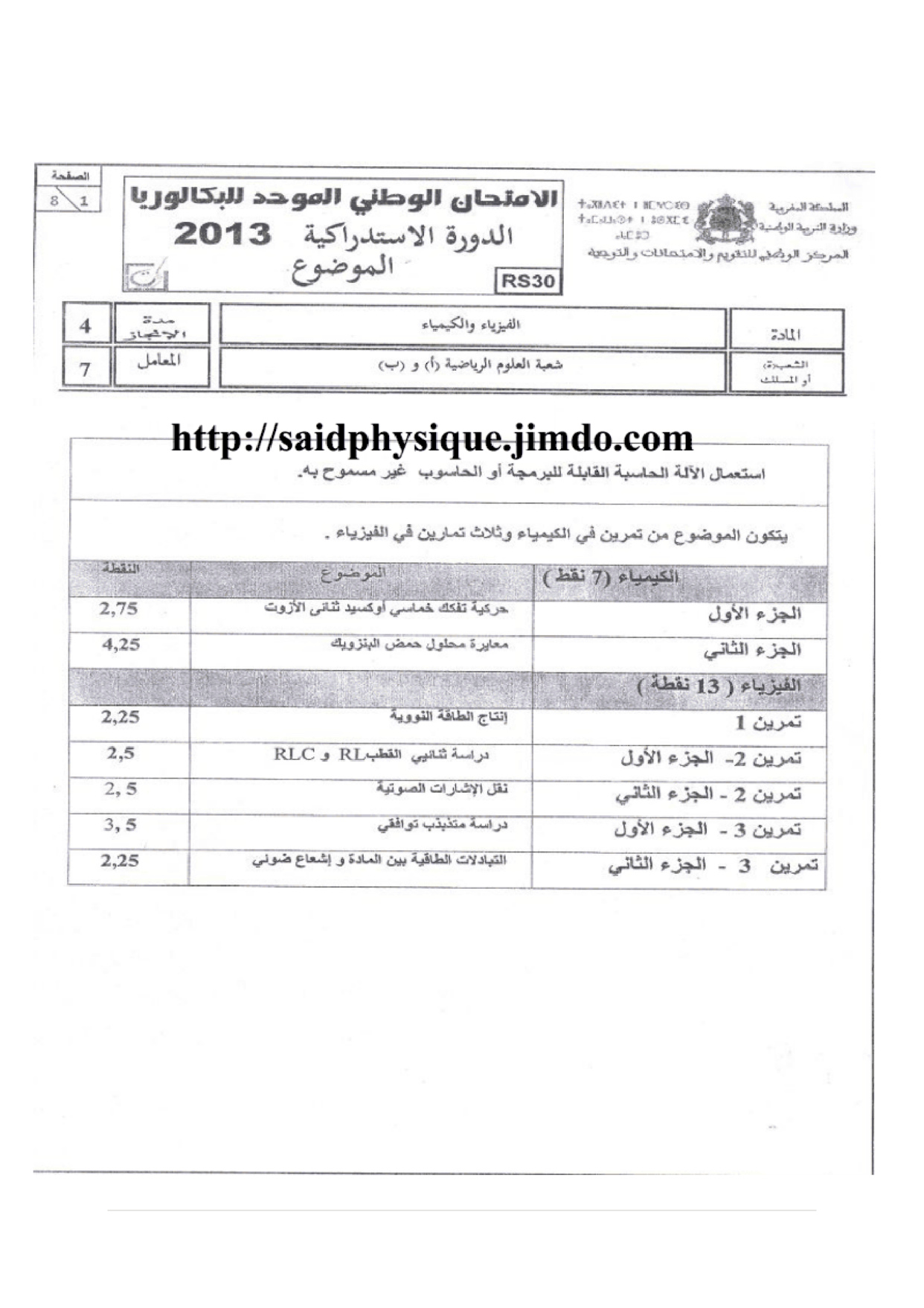 الفيزياء والكيمياء علوم رياضية 2013 الدورة الإستدراكية - الموضوع