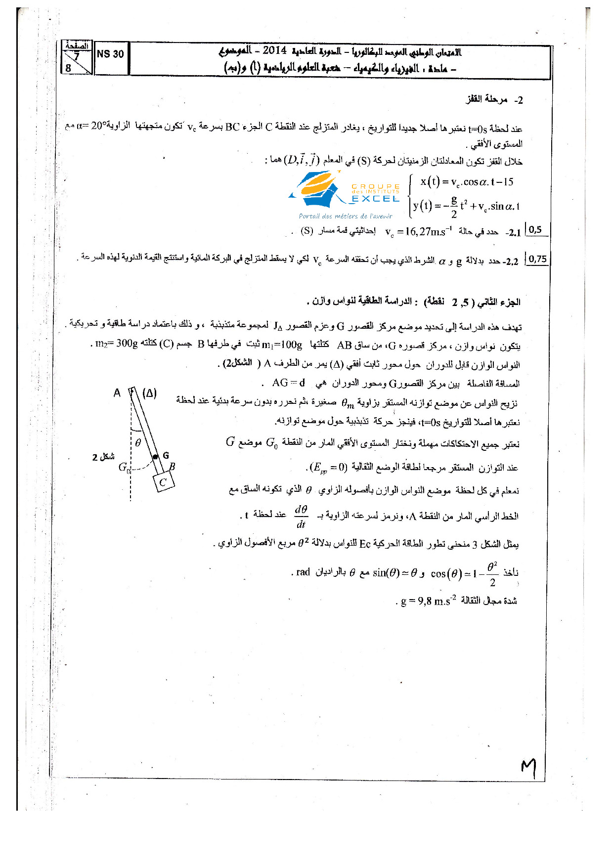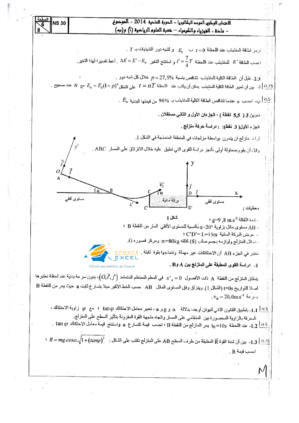 الفيزياء والكيمياء علوم رياضية 2014 الدورة العادية - الموضوع